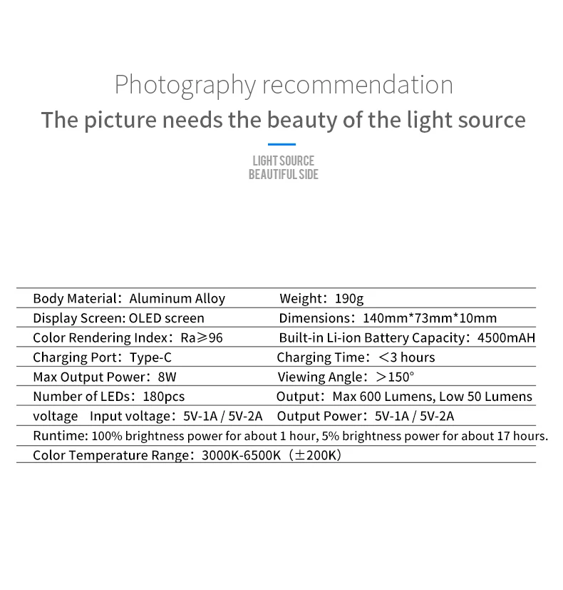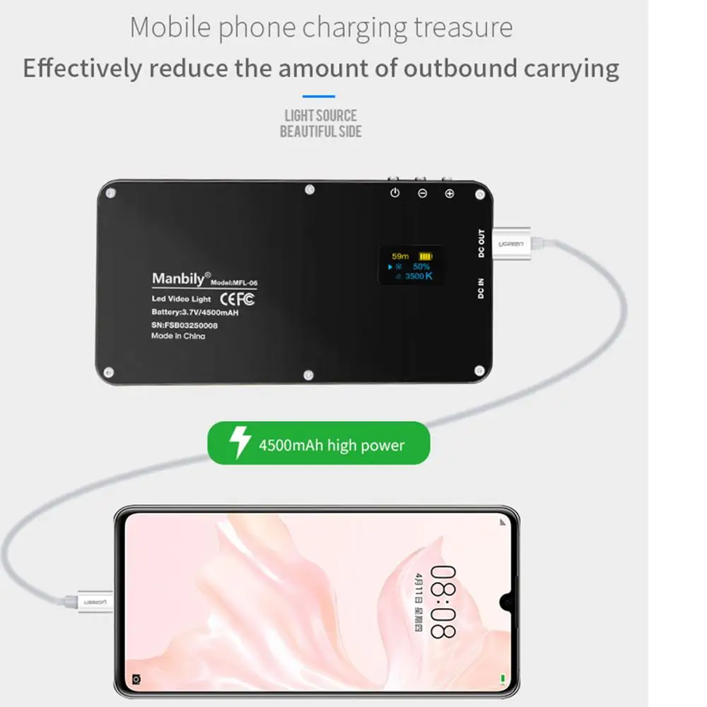 Manbily MFL-06 мини портативный светодиодный светильник для селфи 4500 мАч видео светильник для фотосъемки светильник для DSLR камеры Youtube светильник