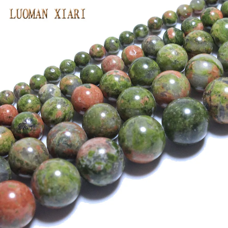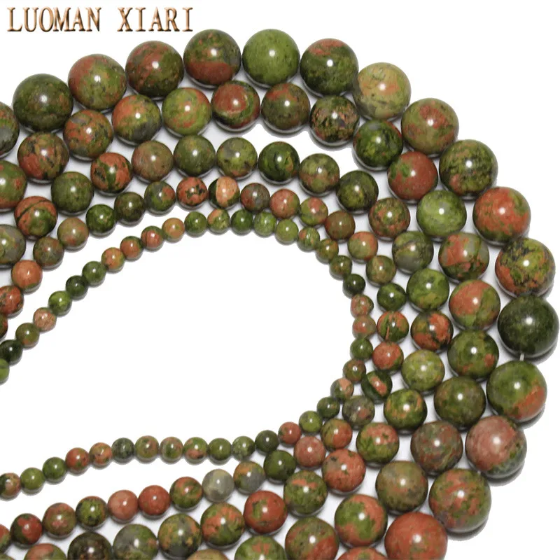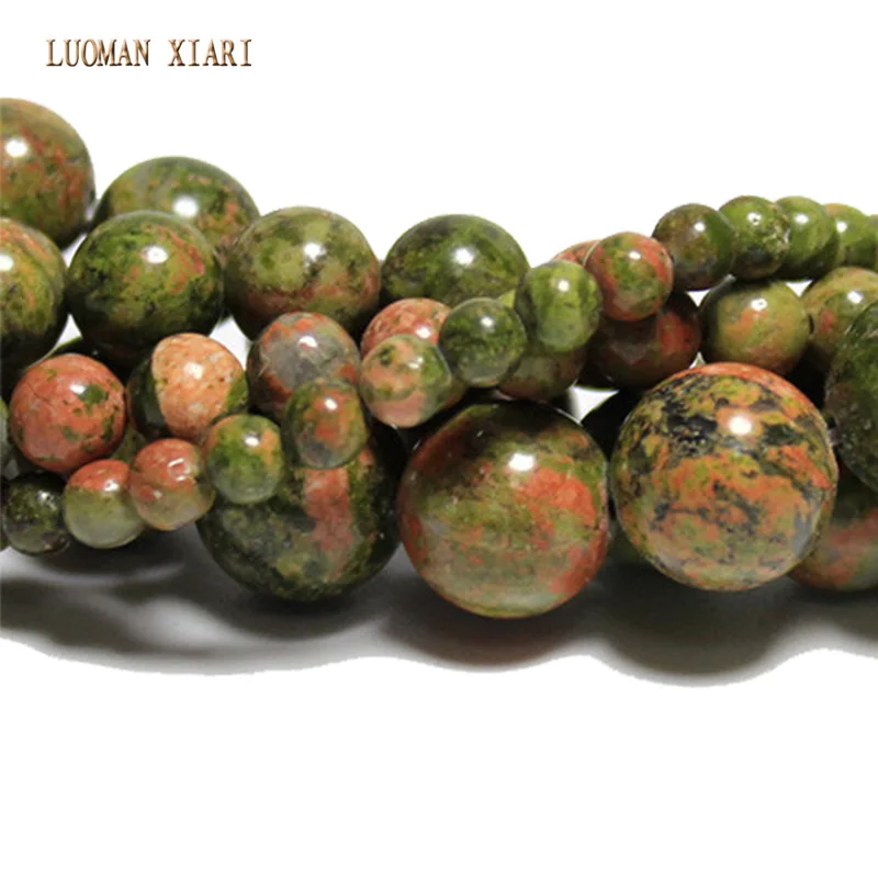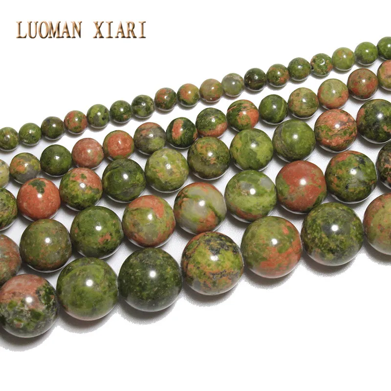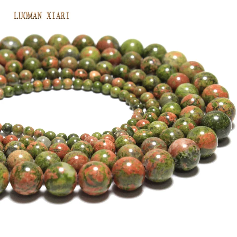 Ожерелье из 100% натурального унакита, Бусины круглые каменные бусин, 4681012 мм