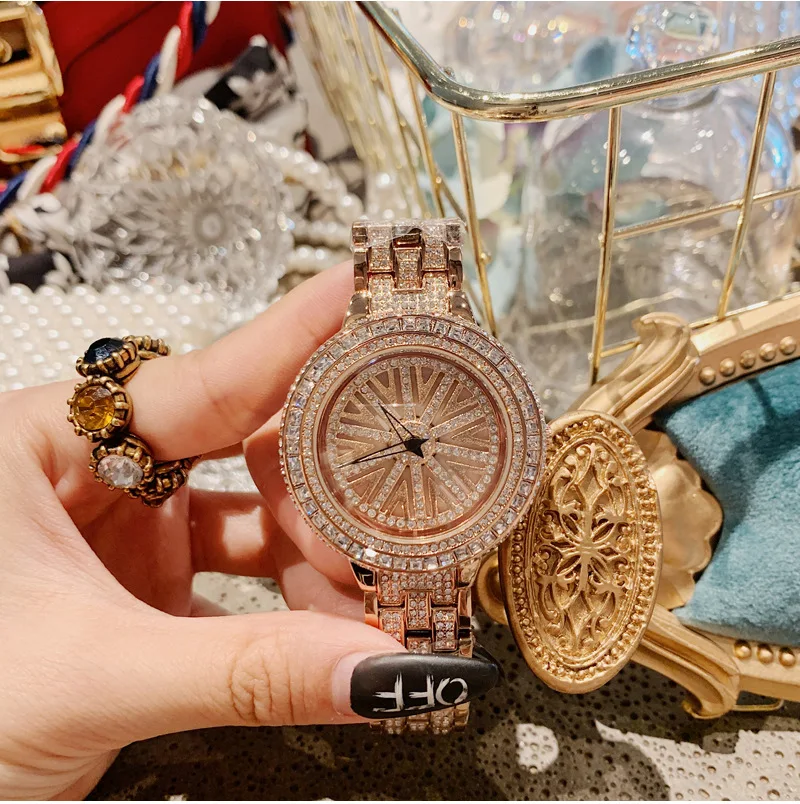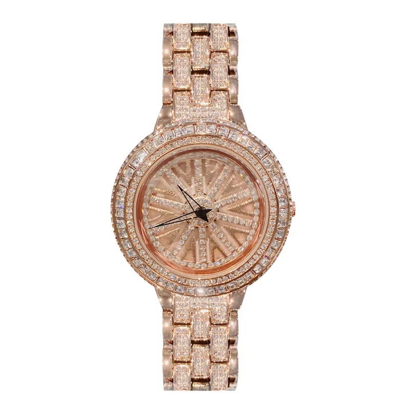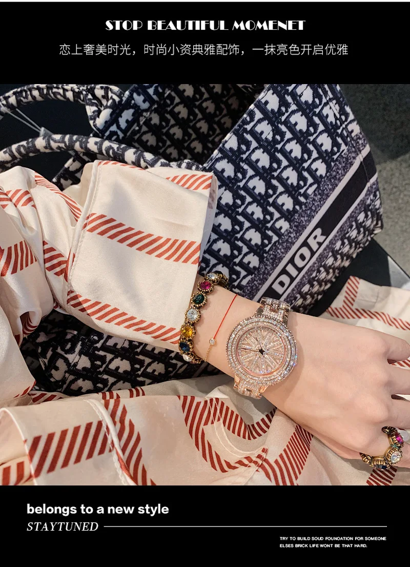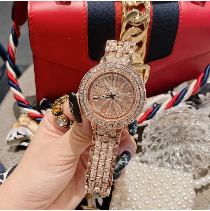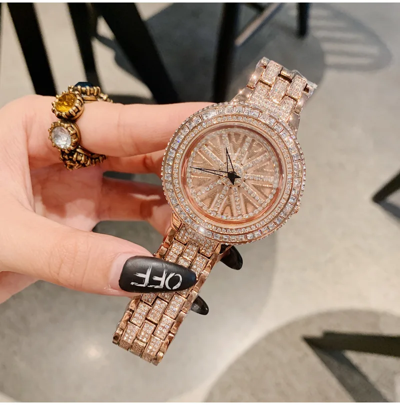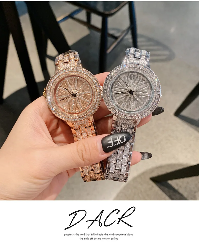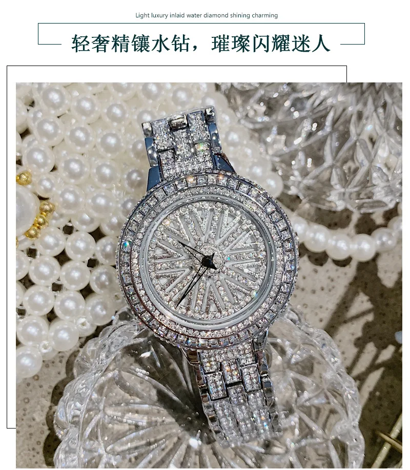 Женские Подарочные часы из нержавеющей стали, женские блестящие вращающиеся нарядные часы с бриллиантами, Роскошные наручные часы из розового золота