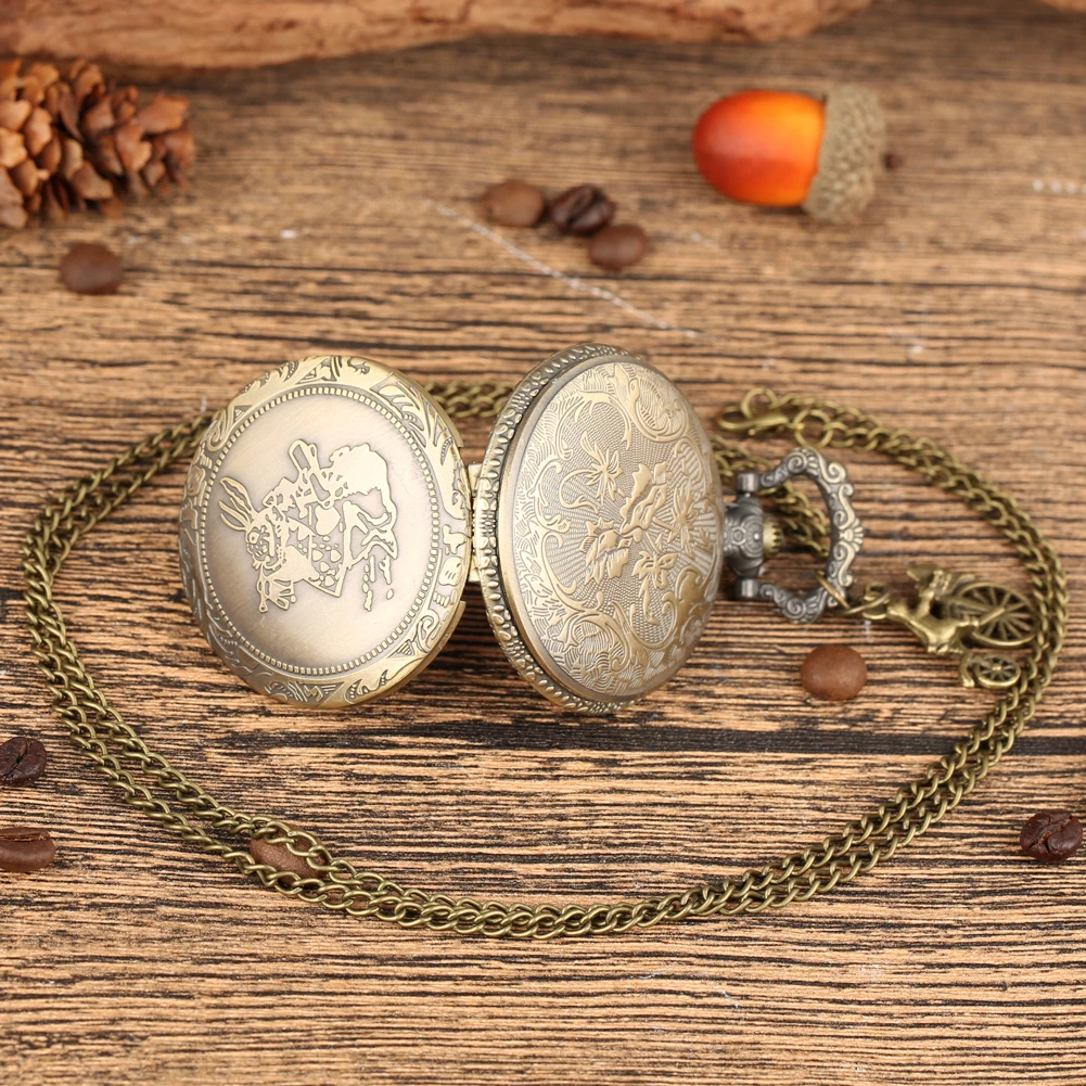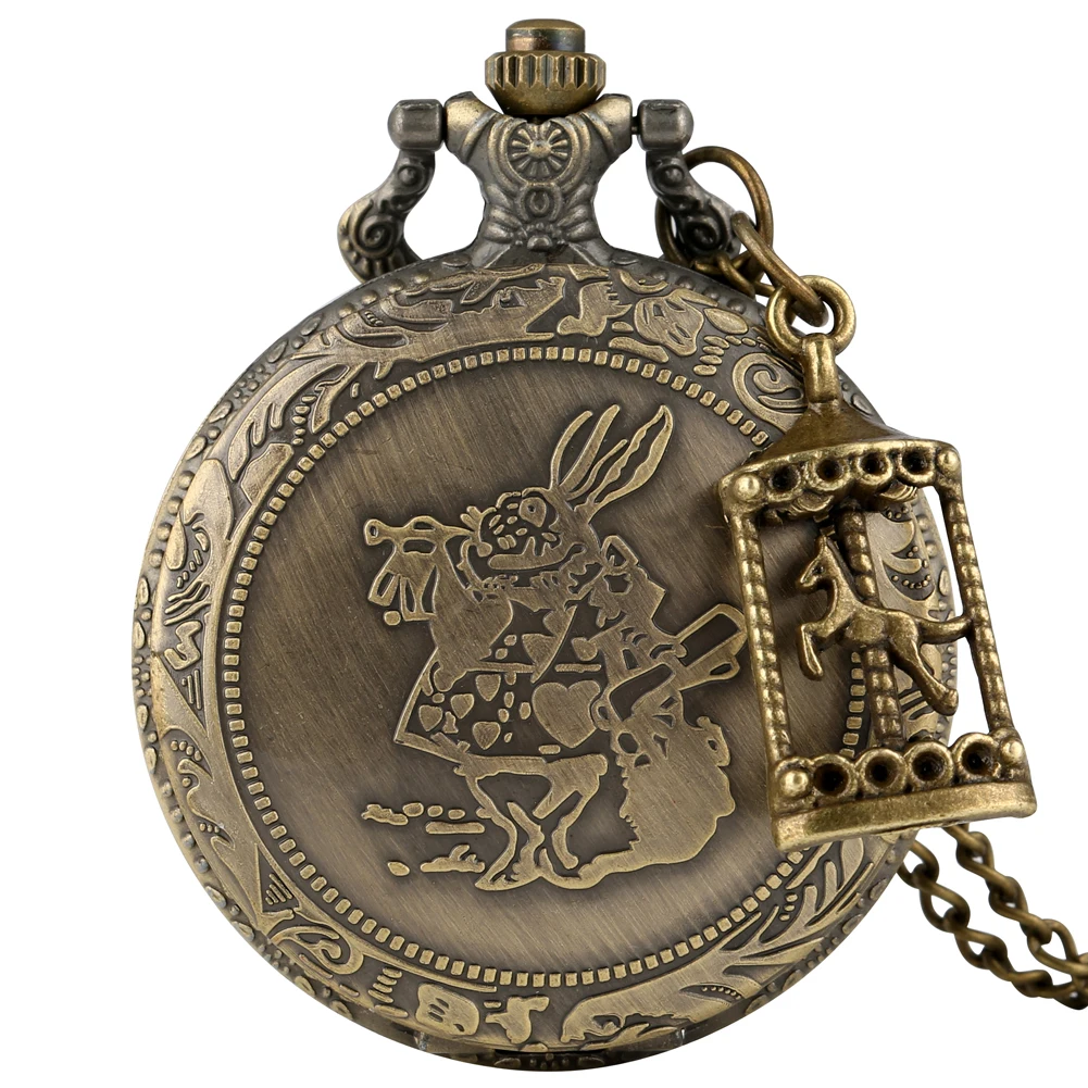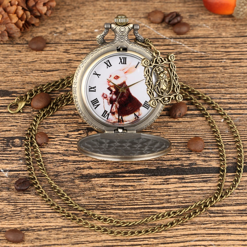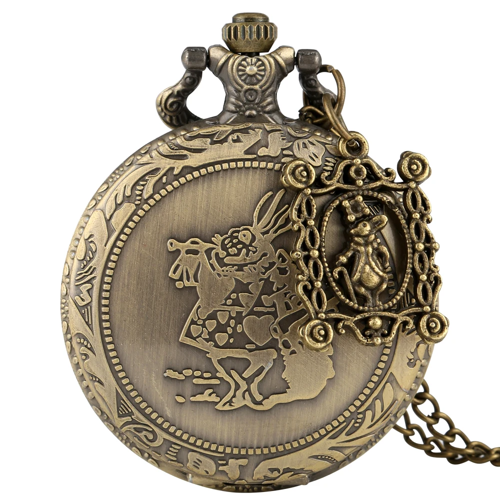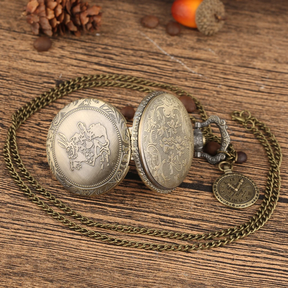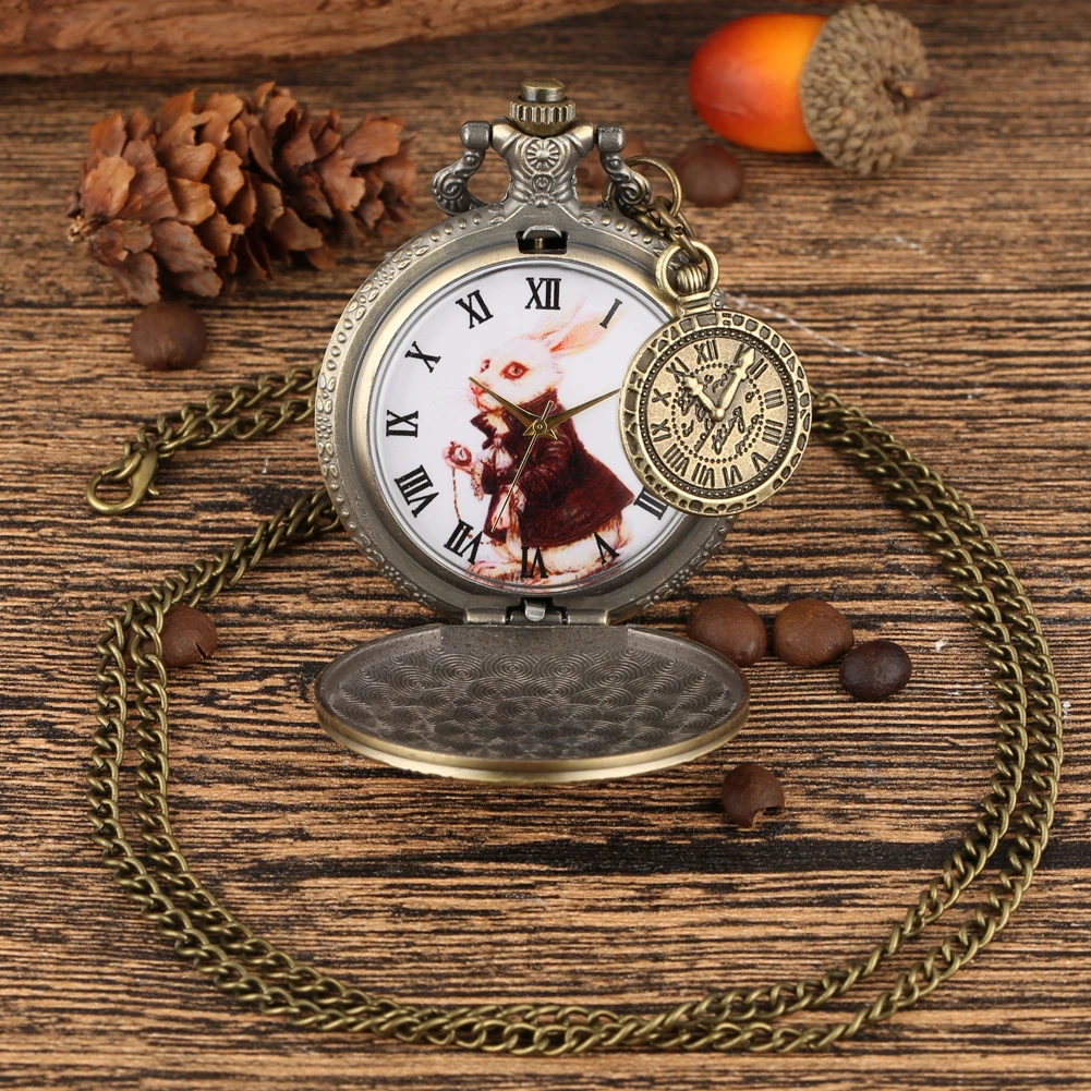 Бронзовые часы Алиса в стране чудес, милый кролик, кварцевые карман...