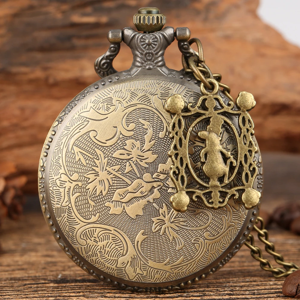 Винтажные бронзовые карманные часы с кроликом с красивым аксессуаром часы с римскими цифрами-подвеска в стиле стимпанк Подвеска часы Reloj De Bolsillo