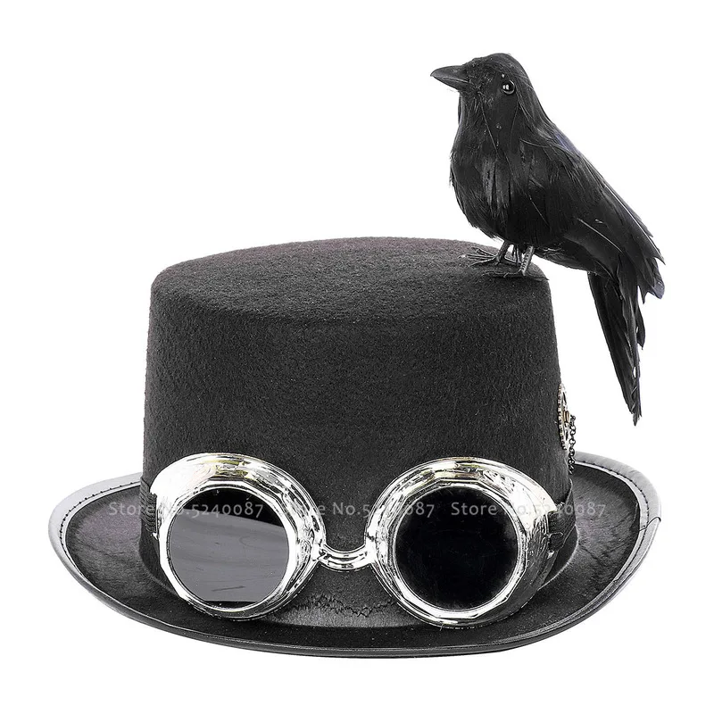 Мужская шляпа ворона для джазовой музыки, карнавал, ретро, готика, стимпанк, Шляпа Волшебника, для выступлений, вечерние реквизиты волшебника для косплея