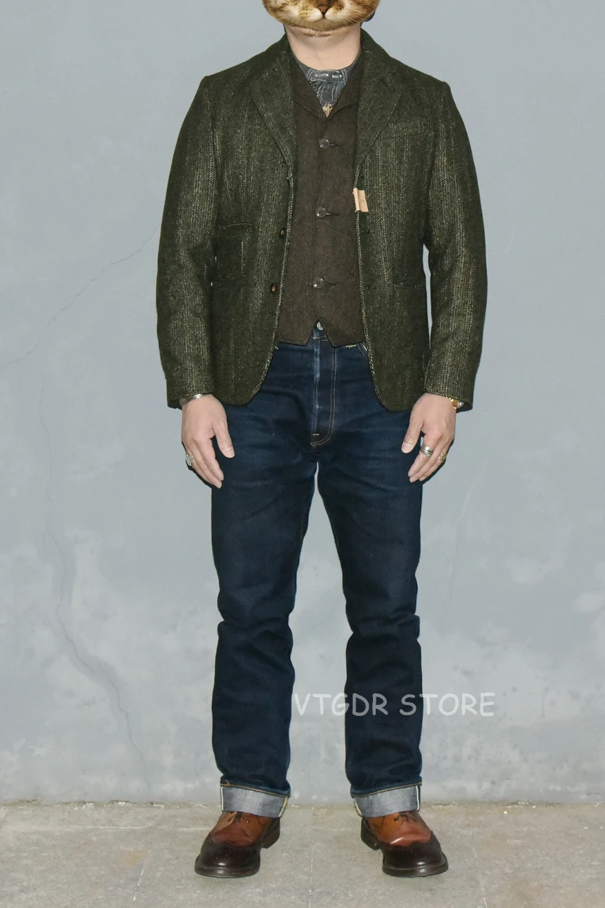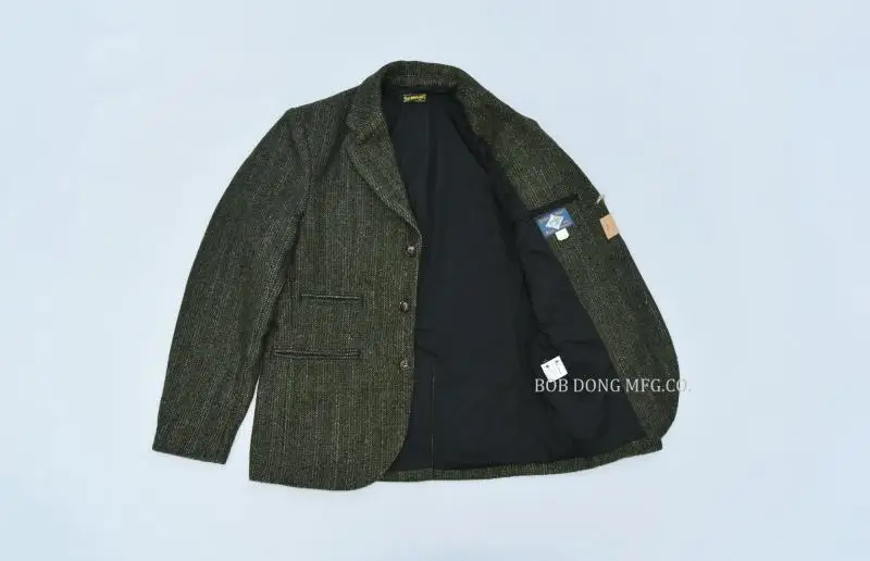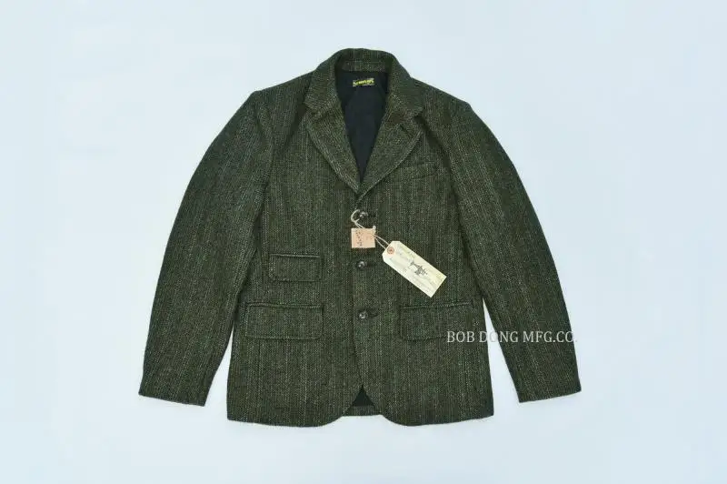 Твидовый пиджак BOB DONG, винтажный шерстяной пиджак в полоску для мужчин