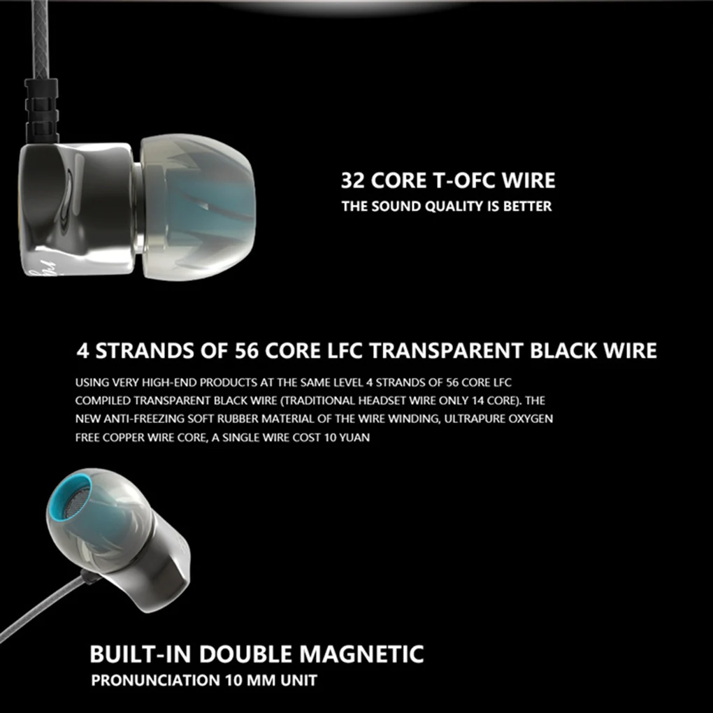QKZ DM7 наушники Металлические стерео шумоизолирующие наушники-вкладыши Встроенный микрофон HiFi тяжелый бас 3,5 мм наушники