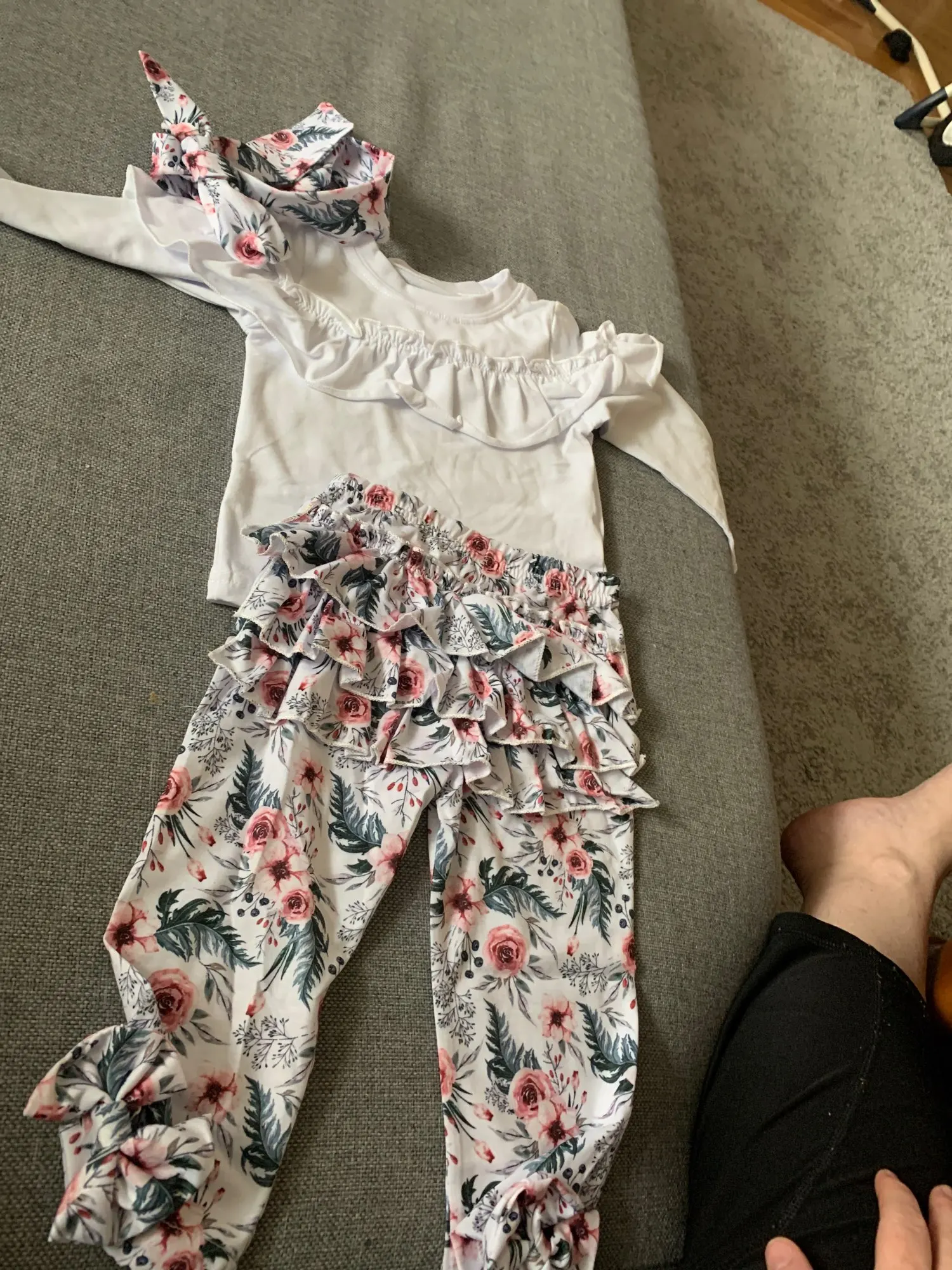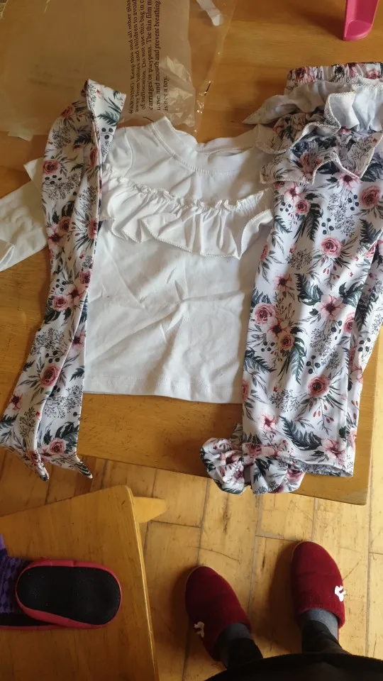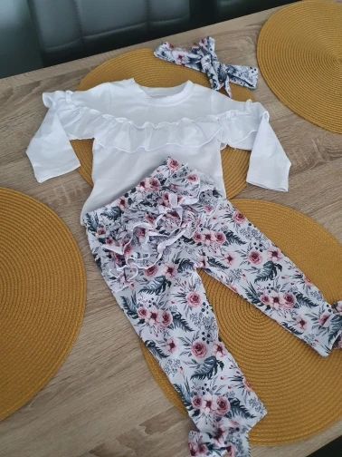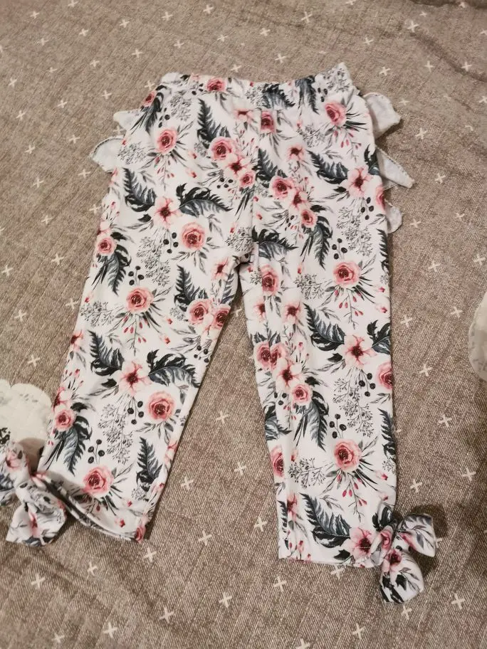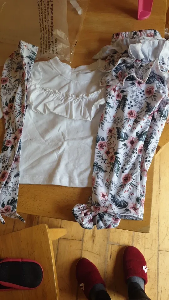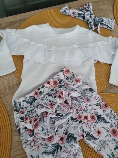 Комплект одежды для малышей, однотонный топ, штаны с принтом для девочек, топ с оборками и цветочным рисунком, леггинсы, комплект одежды из 3 предметов, От 1 до 5 лет