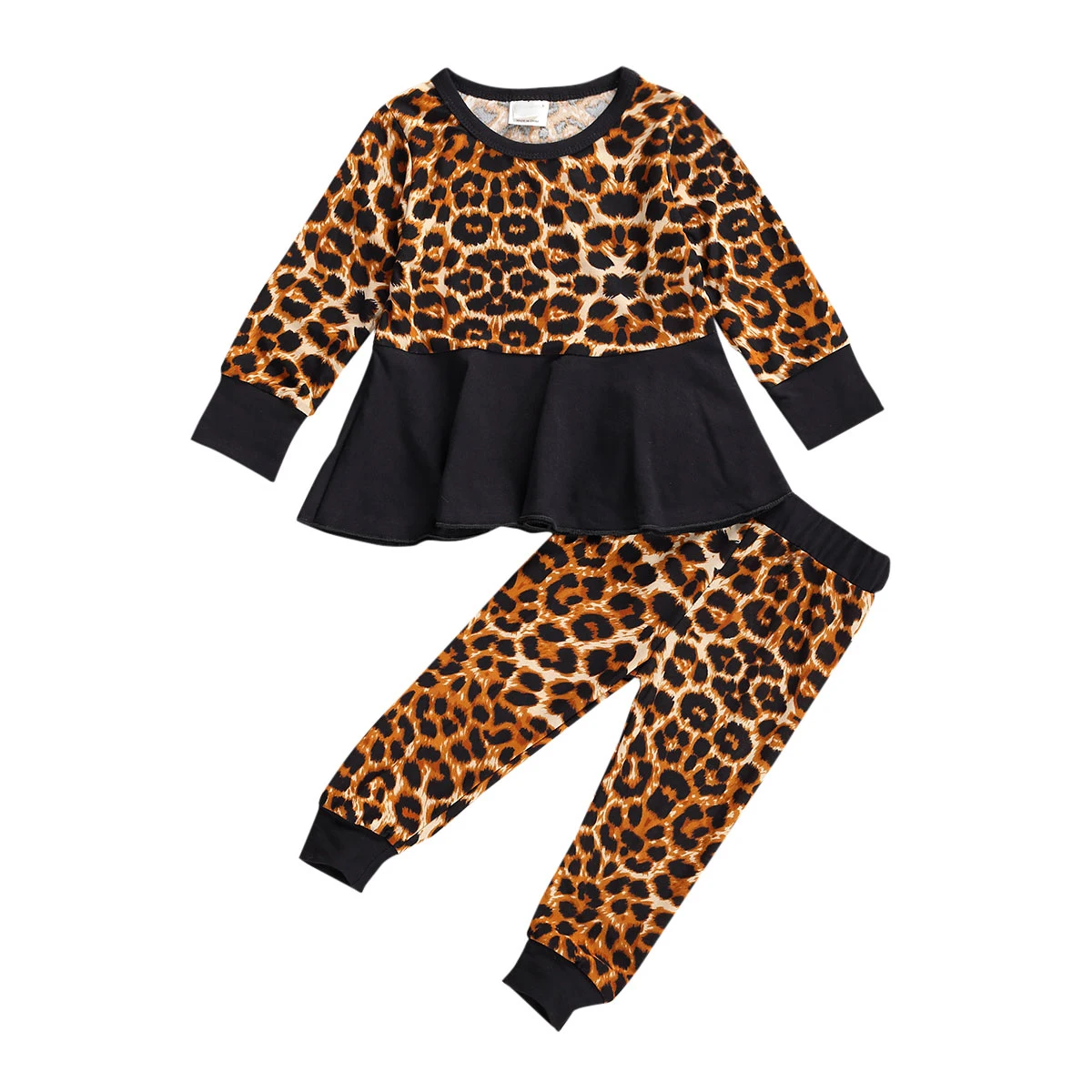 Топ и леггинсы для девочек, с леопардовым принтом и оборками