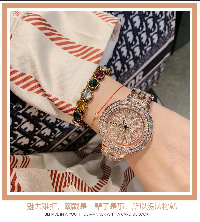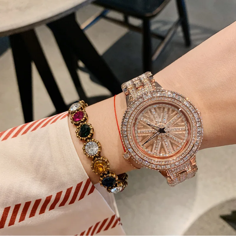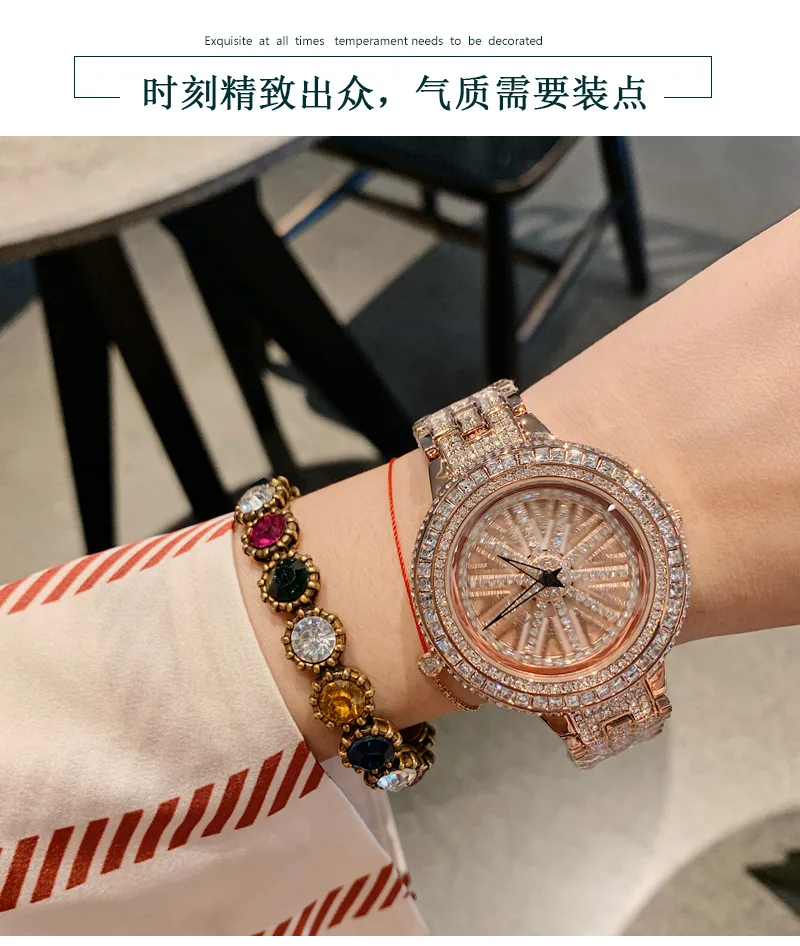 Женские часы в подарок на Новый год, женские сверкающие часы с вращением под платье, наручные часы с бриллиантами, серебристые, розовые, золотые шикарные часы, часы