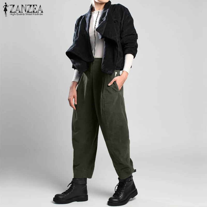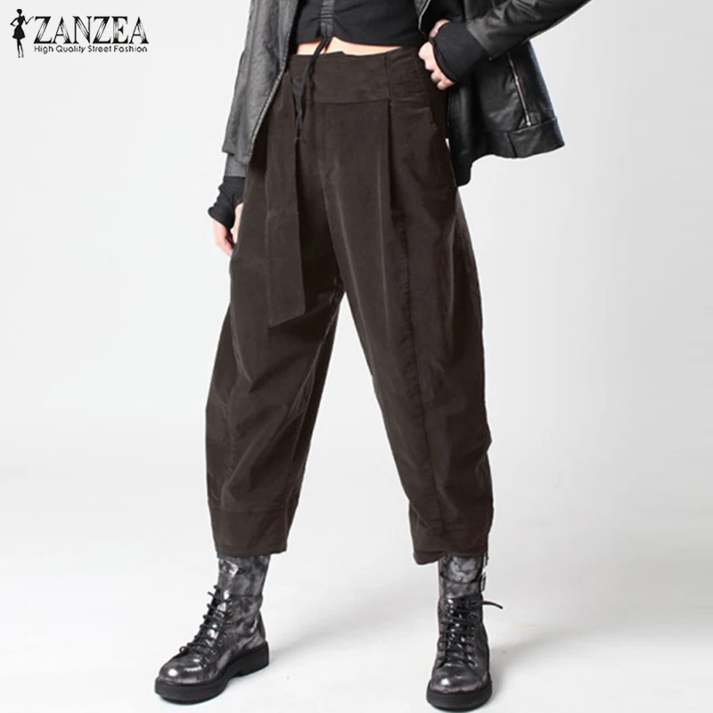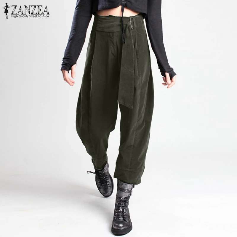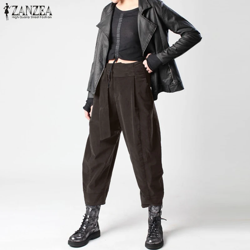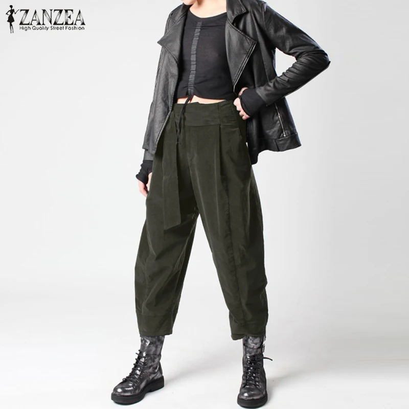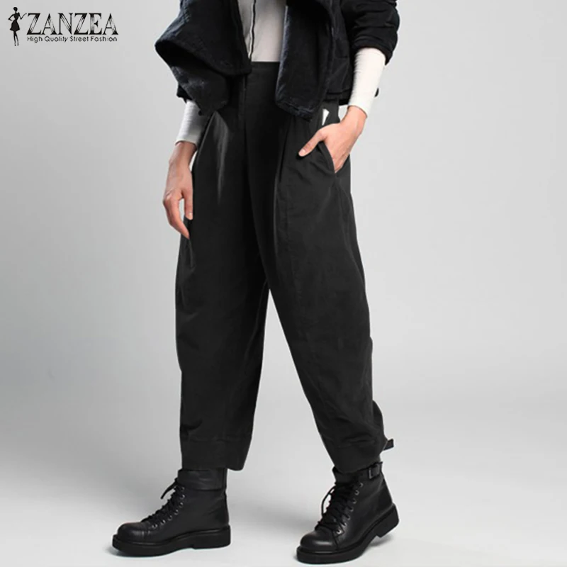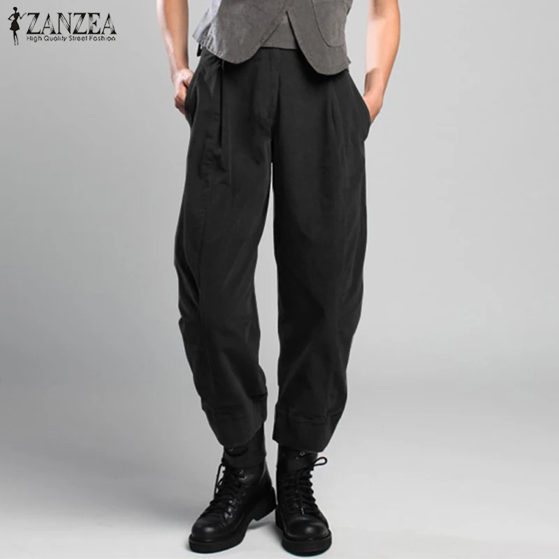 Женские винтажные брюки-карго ZANZEA, летние однотонные шаровары с высокой талией, свободные брюки в форме репы, уличная одежда 5XL