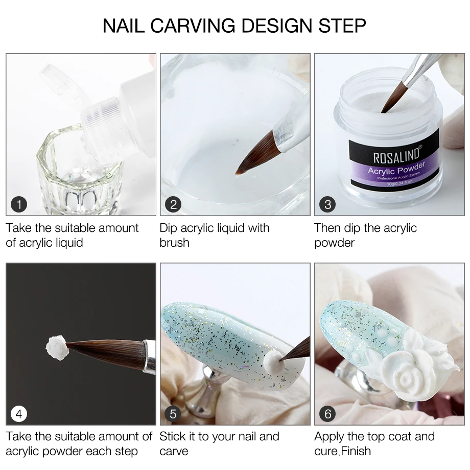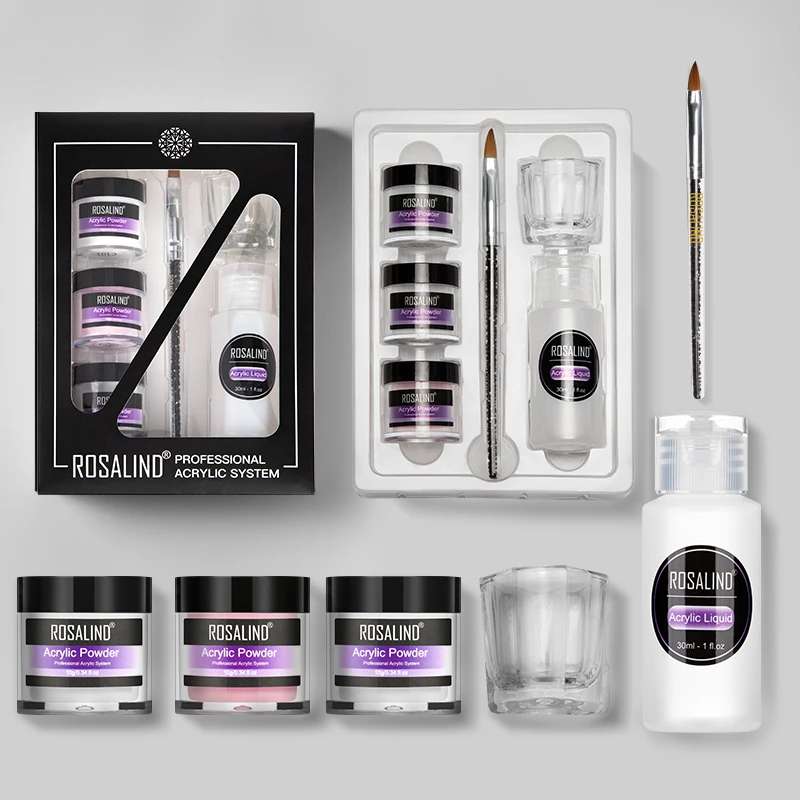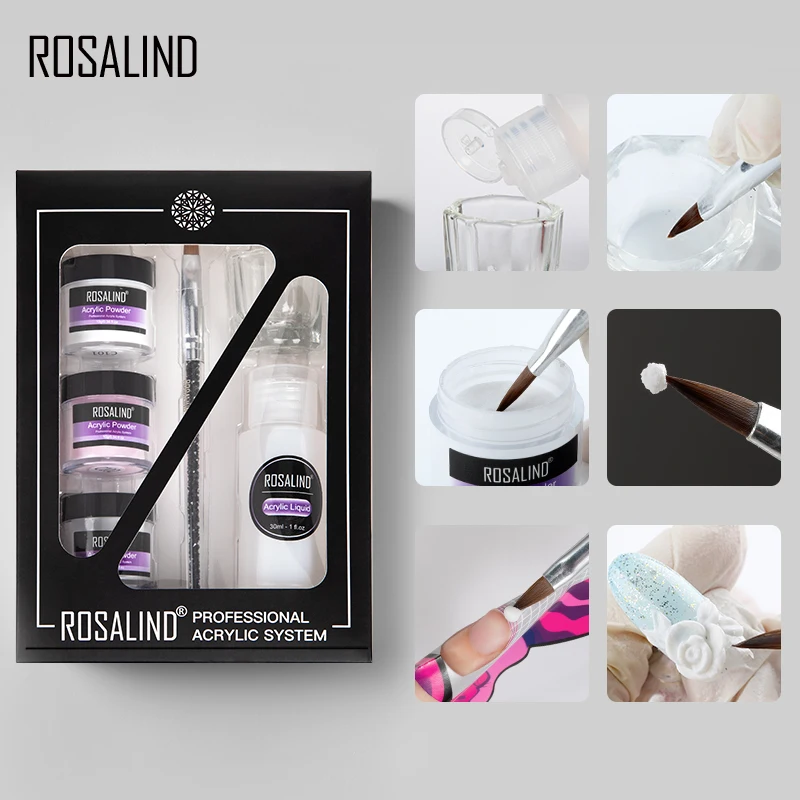 Бренд: ROSALIND Название: акриловый набор вес: 150 г используется для: наращивания ногтей и резьбы по ногтям в комплекте: акриловый порошок * 3, акриловая жидкость, ручка для резьбы и стеклянная чашка