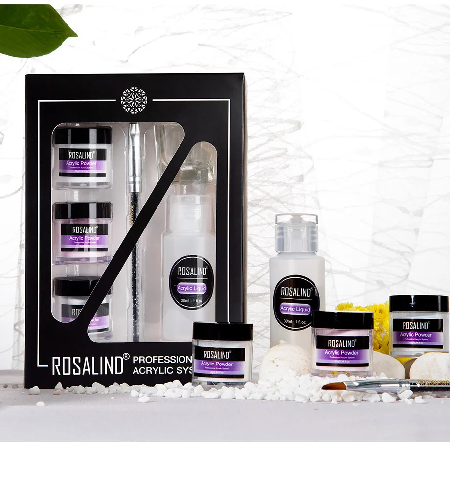 Розалинд акриловую пудру, набор инструментов для погружения с перфорацией; С украшением в виде кристаллов порошок поли для наращивания ногтей строитель маникюрный набор акриловый Фрезер для ногтей cо шлифовальными комплект