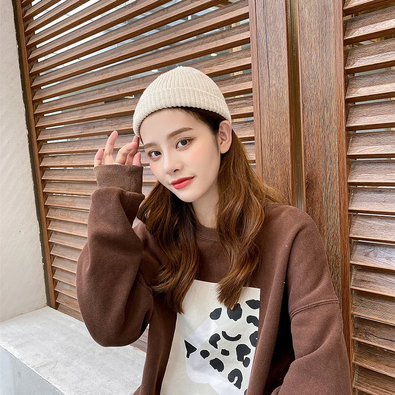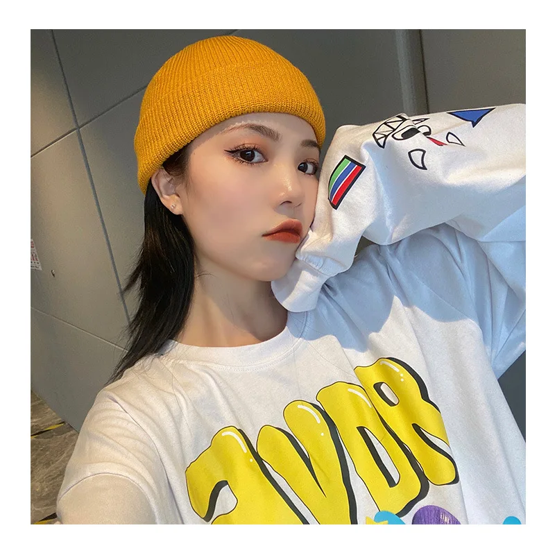 Шапка без козырька, шапка в стиле хип-хоп, шапка, уличная вязаная шапка для женщин и мужчин, акриловая Повседневная однотонная переносная шапка-тыква в стиле унисекс, зима