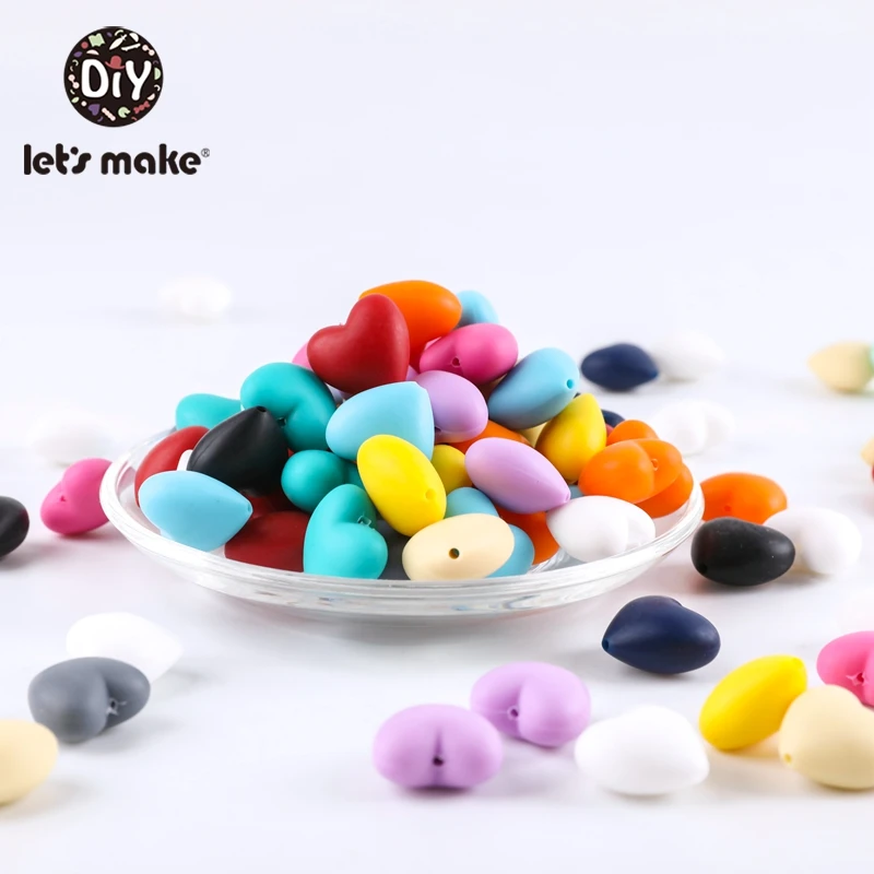10 шт., силиконовые бусины для прорезывания зубов, в форме сердца