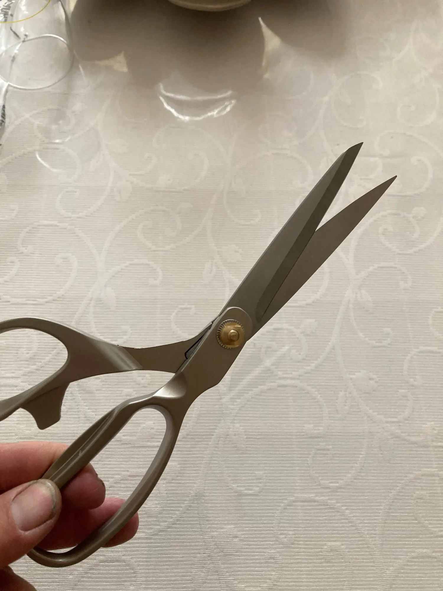 Шикарные портновские ножницы, реально острые, мама очень довольна, не ожидала такого качества, в руке держать одно удовольствие. Попробовали на картонке и целлофане, режут как по маслу, отличное качество, далее отзыв дополним через время. Спасибо
