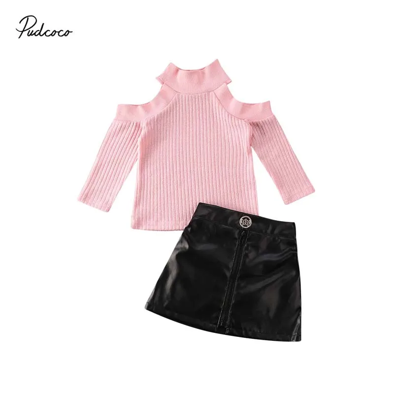 Свитер с открытыми плечами и юбка из ПУ кожи, на возраст 1-5 лет
