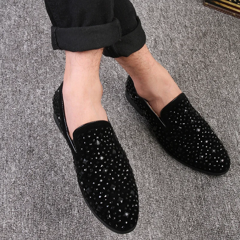 Мокасины QUAOAR мужские, бархатные лоферы, роскошные брендовые Мокасины, деловая обувь, черные стразы, офисная обувь
