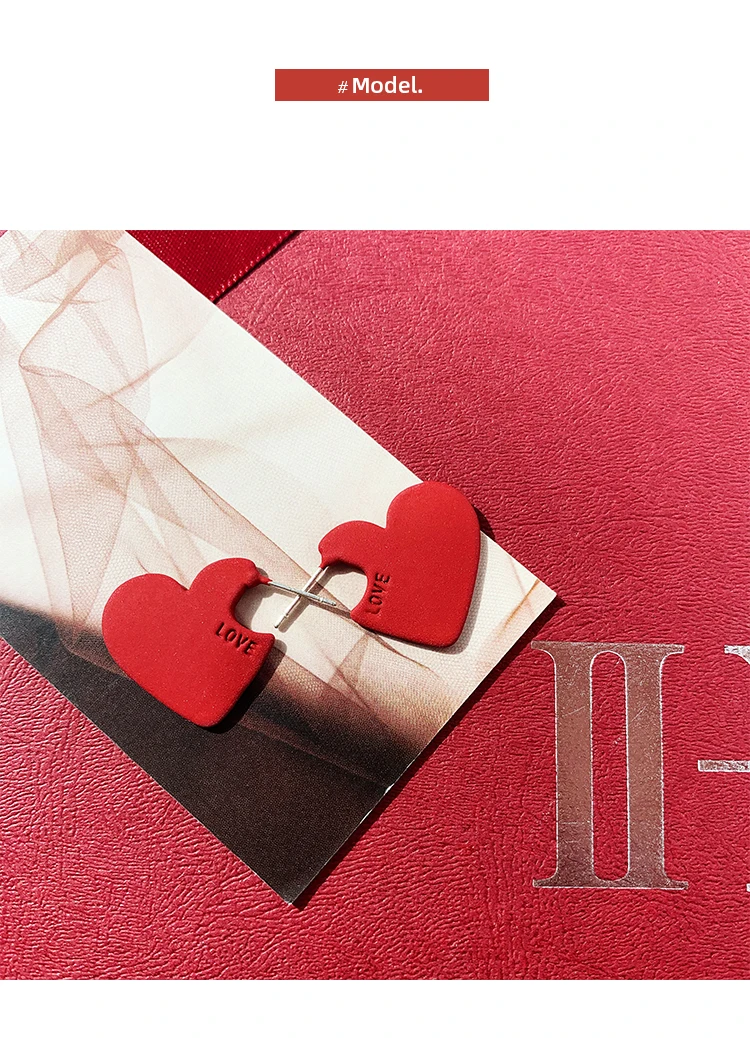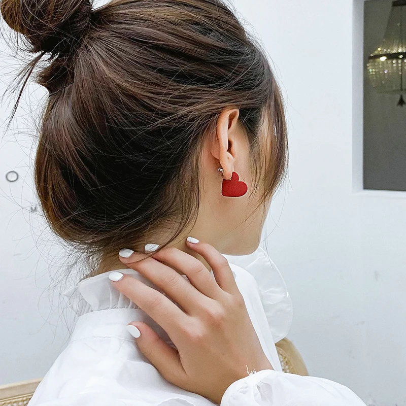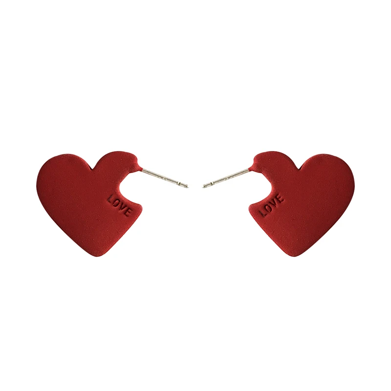 Женские серьги с красными сердечками, серьги из металлического сплава с буквами, корейский стиль