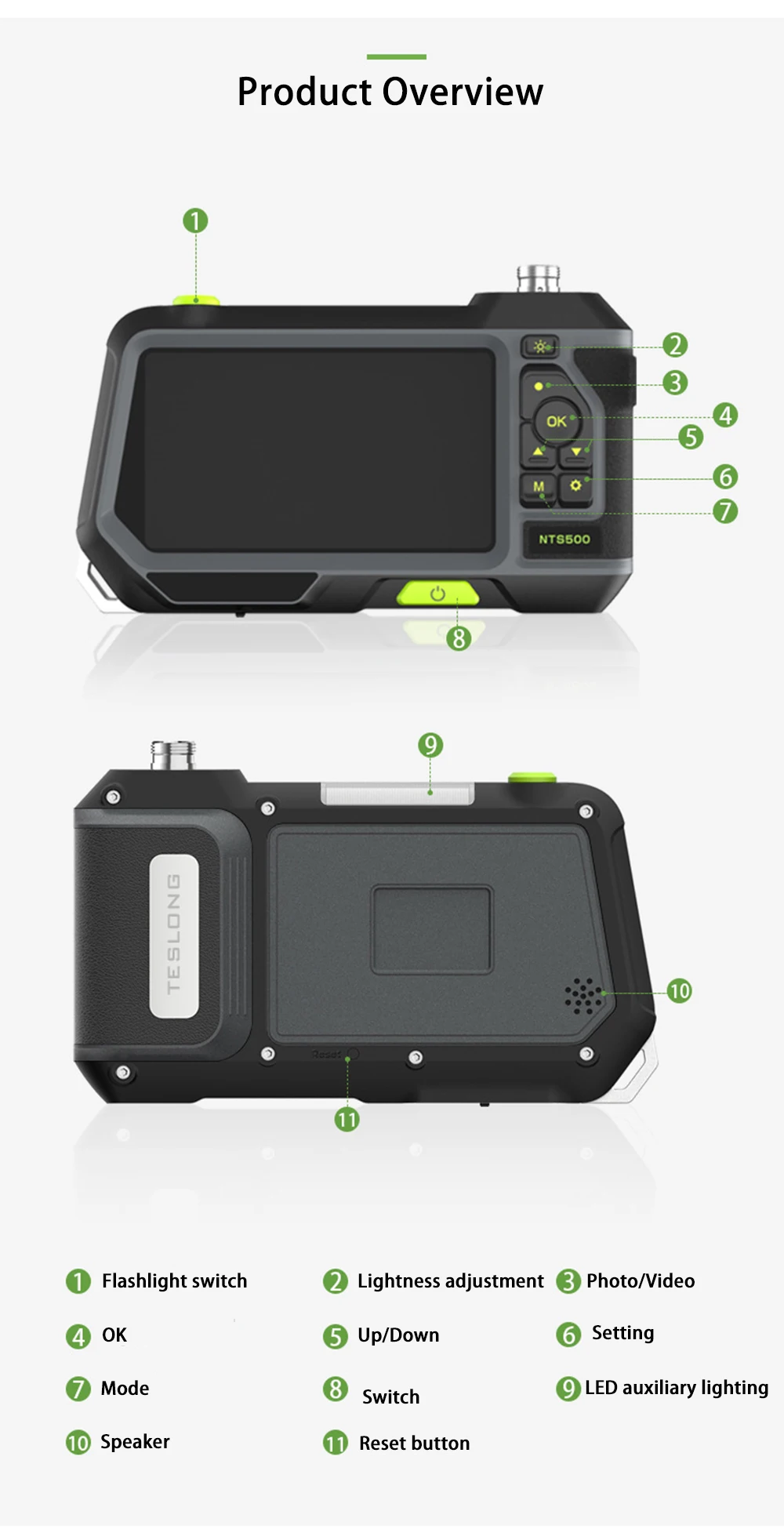 Эндоскоп TESLONG NTS500 с ЖК-экраном 5,0 дюйма, 5,5 мм, двойной объектив, камера HD 1080P, цифровой видеоскоп, трубка, бороскоп для осмотра автомобиля, 32 ГБ