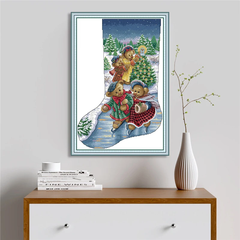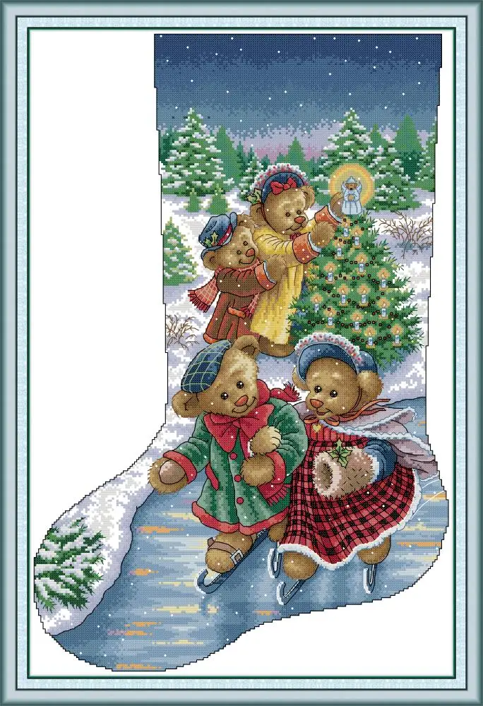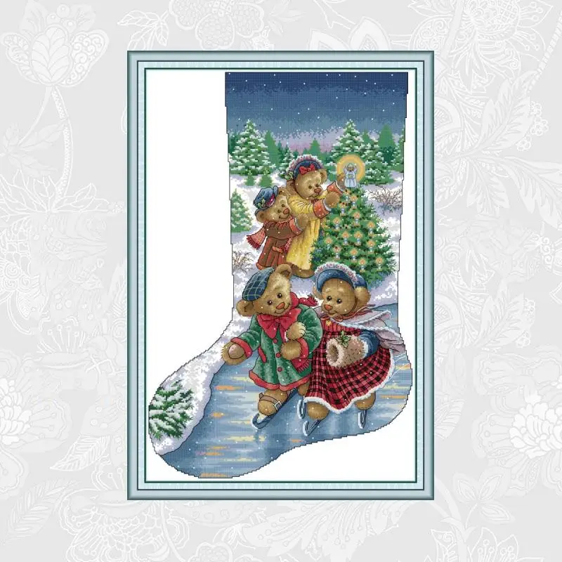 Joy Sunday маленькие медведи Рождественский чулок Печать на холсте наборы для вышивки DMC 14CT 11CT китайские наборы для вышивки крестиком