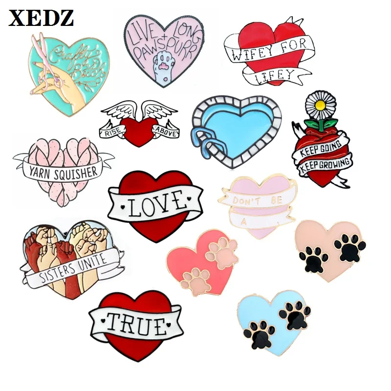 XEDZ Любовь Эмаль Булавка ножницы крылья цветы бассейн рука животное лапа Алфавит лента романтическое искусственное лацкан