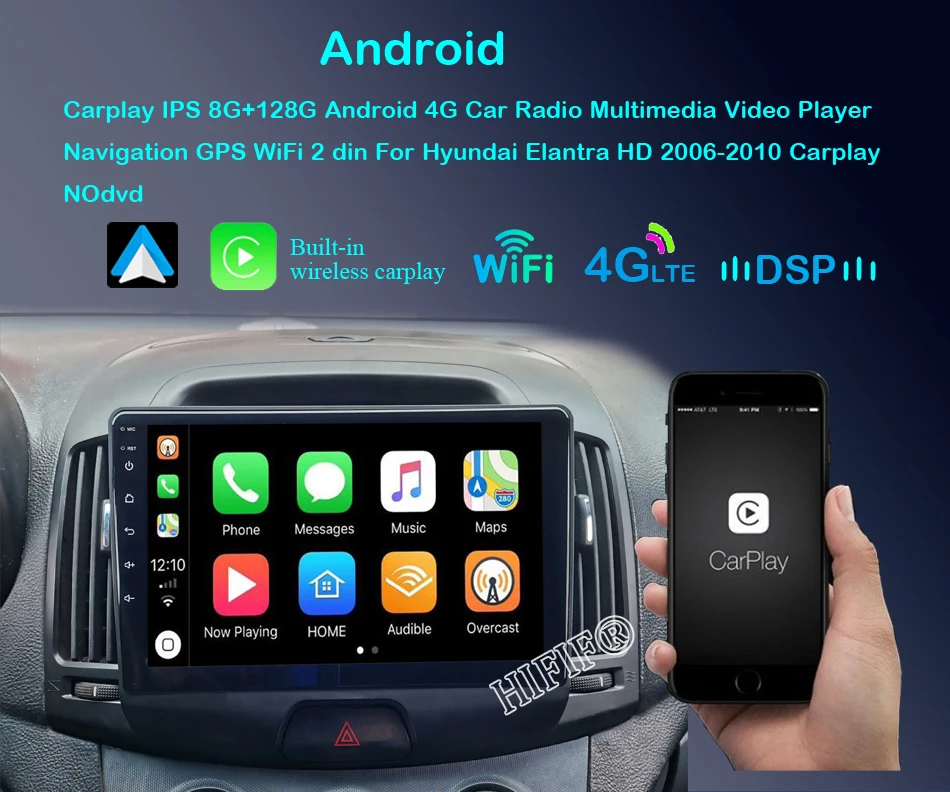 4 + 64G dsp Восьмиядерный автомобильный радио мультимедиа 2 din android 11 видео плеер навигация GPS Carplay для Hyundai Elantra HD 2006-2010