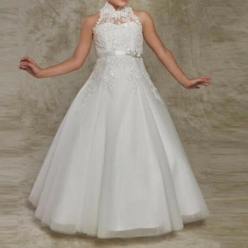 Белые кружевные платья для девочек в пол, платье для первого причастия, платье принцессы для девочек на свадьбу