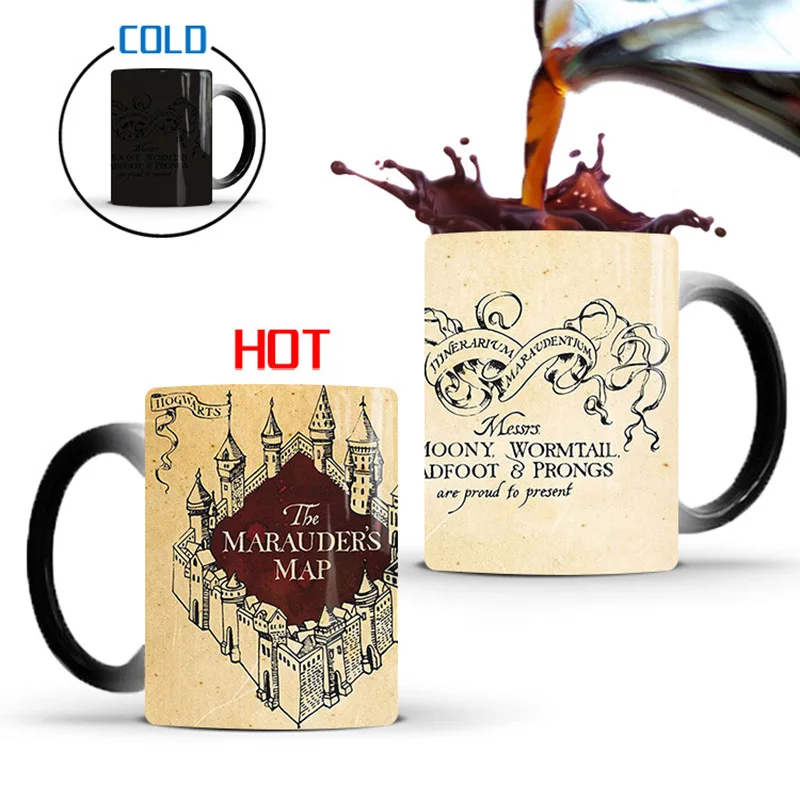 Творческий 350 мл Marauders карта замка пакости управляемых Магическая кружка для кофе горячей и холодной воды, Цвет Изменение Кружки Керамика чашки подарок для друзей