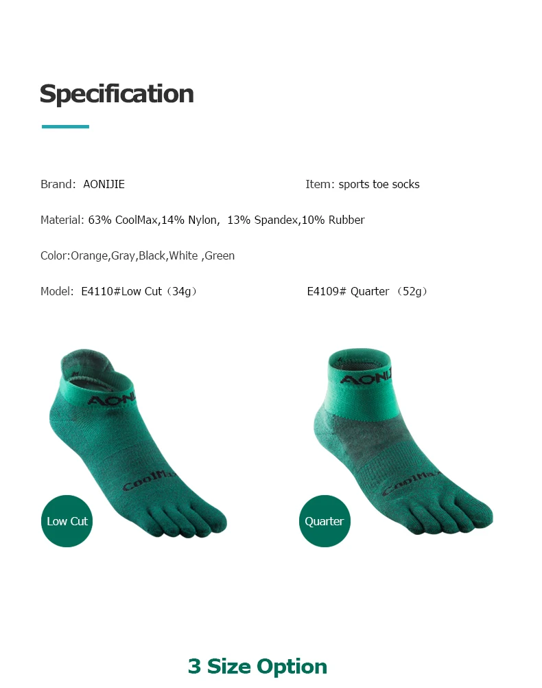 AONIJIE E4110 пара, легкие носки с низким вырезом, для занятий спортом, бега босиком, марафона