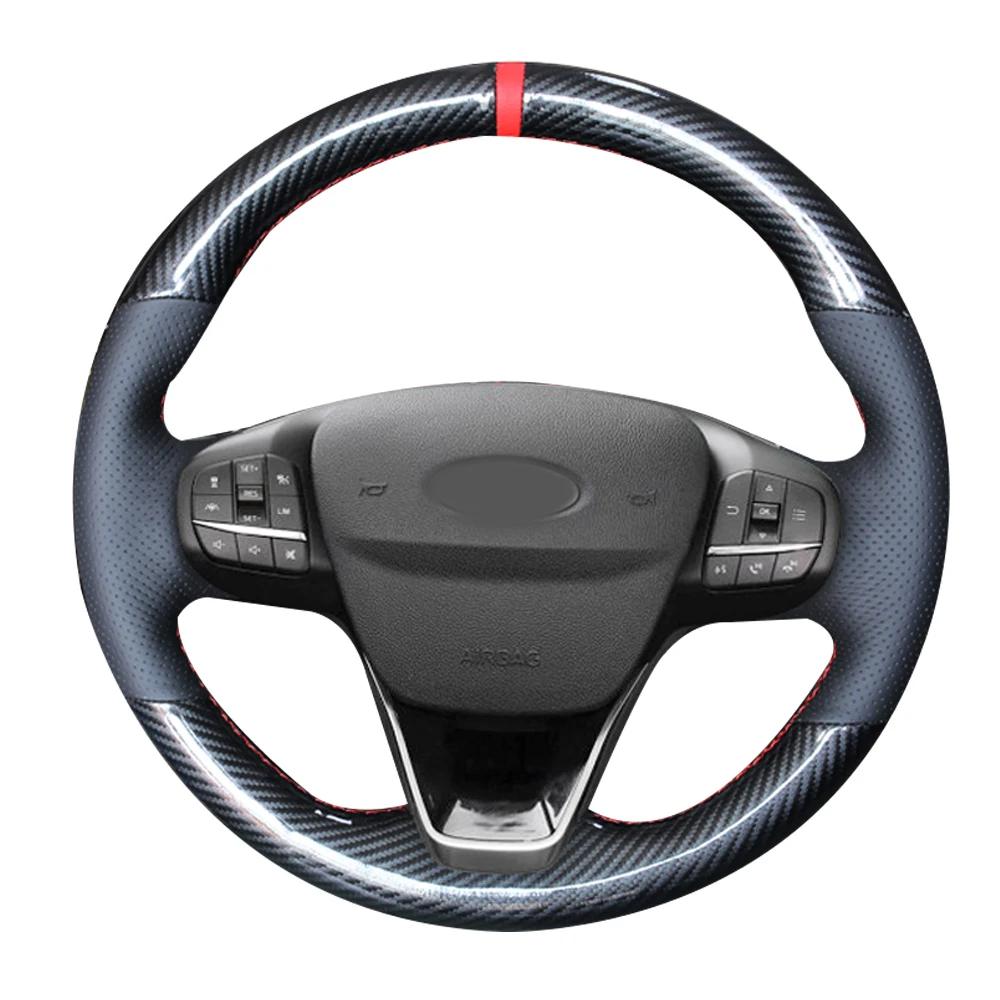 Чехол 5D из углеродного волокна и кожи с отверстиями для рулевого колеса, подходит для Ford Focus 2019 +