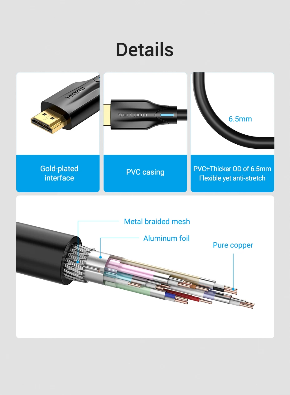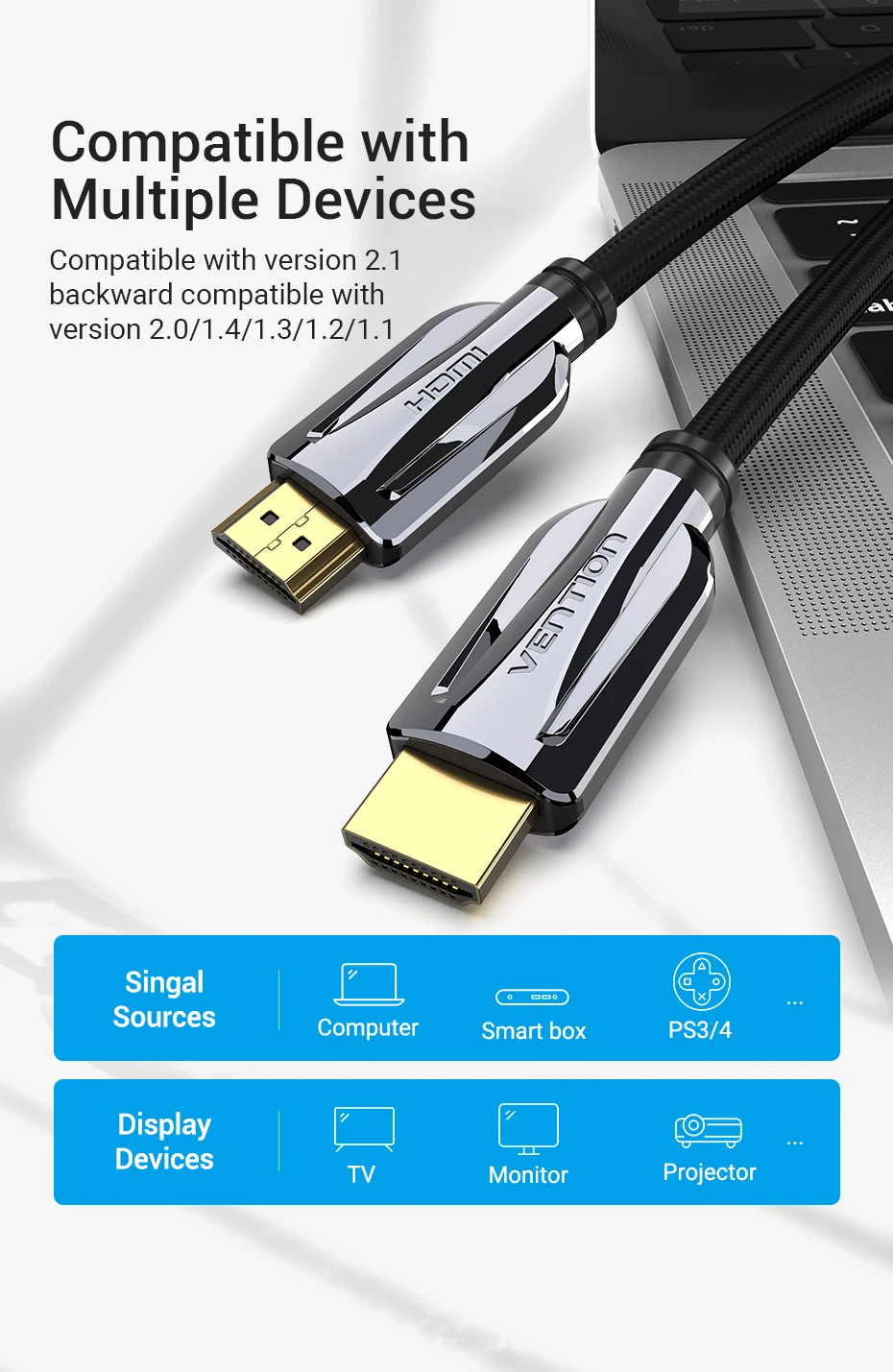 Vention HDMI 2,1 кабель 5 м 120 Гц 4K3D высокоскоростной 48 Гбитс HDMI кабель для PS4 сплиттер переключатель коробка удлинитель аудио видео 8 к HDMI кабель