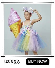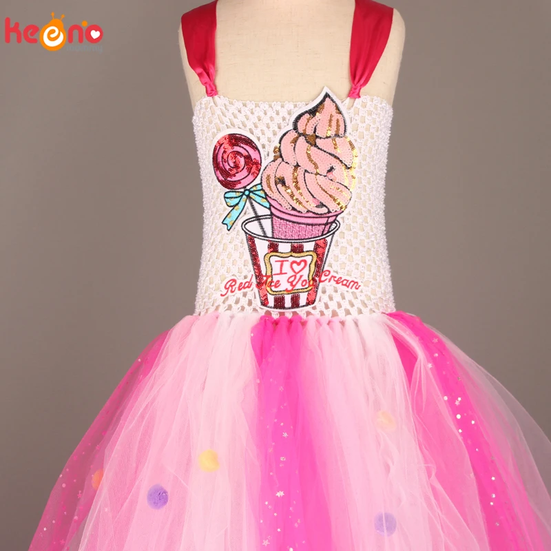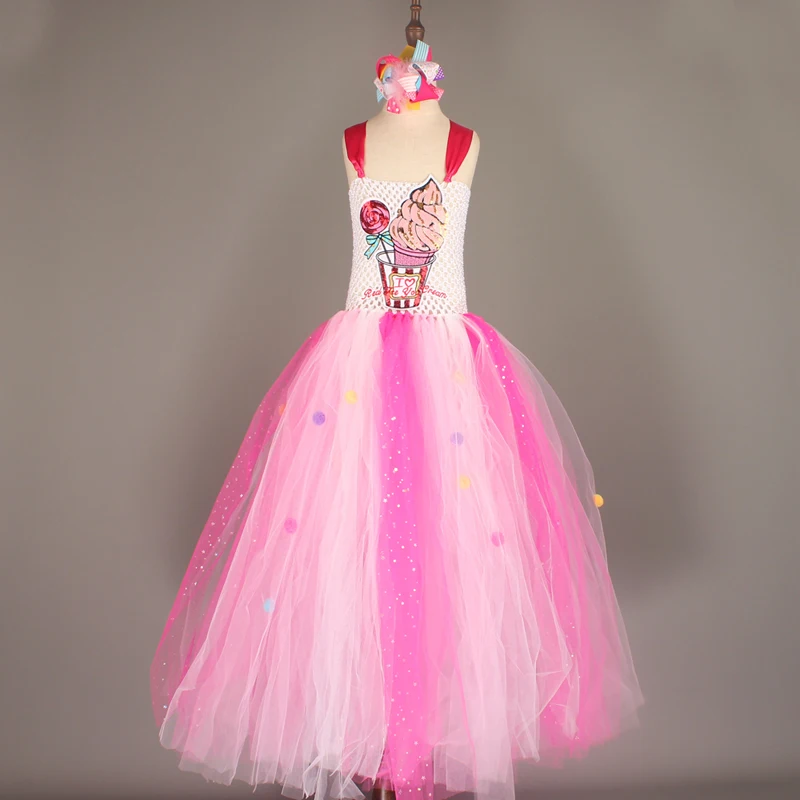 Блестящее платье для девочек с мороженым, платье-пачка с бантом для волос, Детский яркий костюм для свадебной вечеринки, дня рождения, конфетное платье из тюля