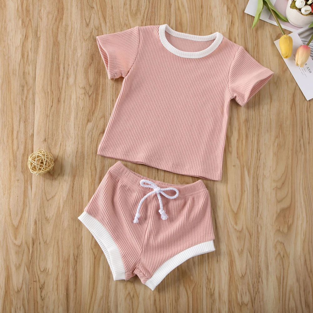 Футболка и шорты для мальчиков и девочек, трикотажные в рубчик, лето 2020