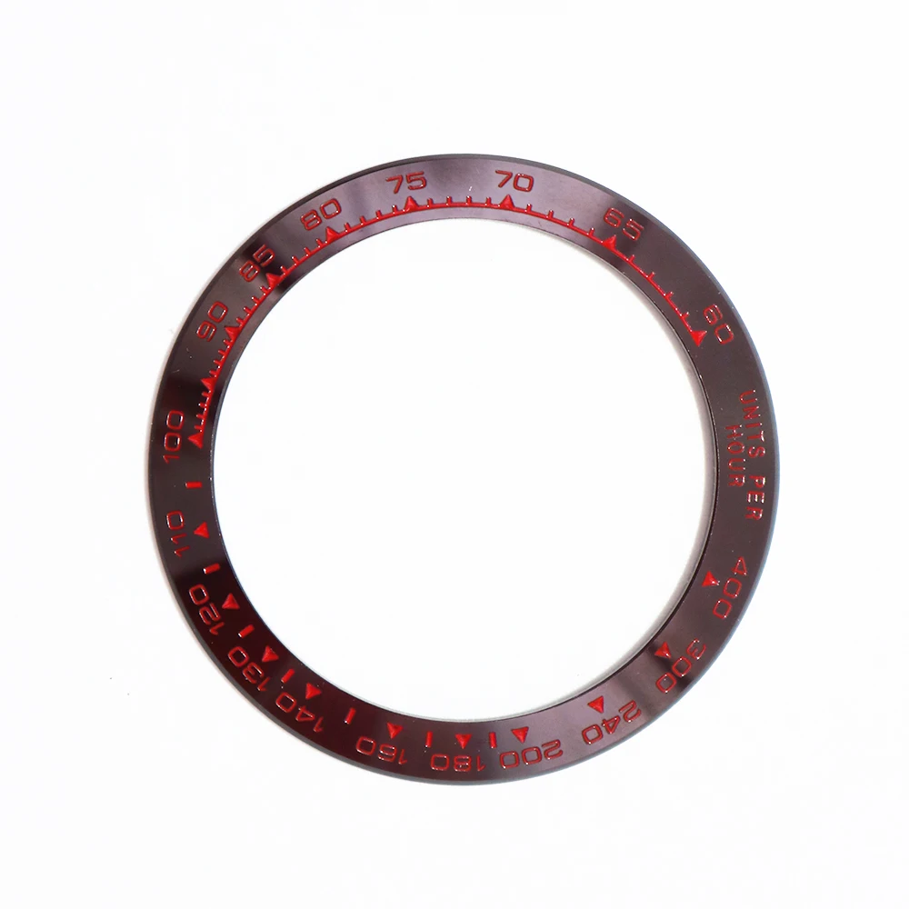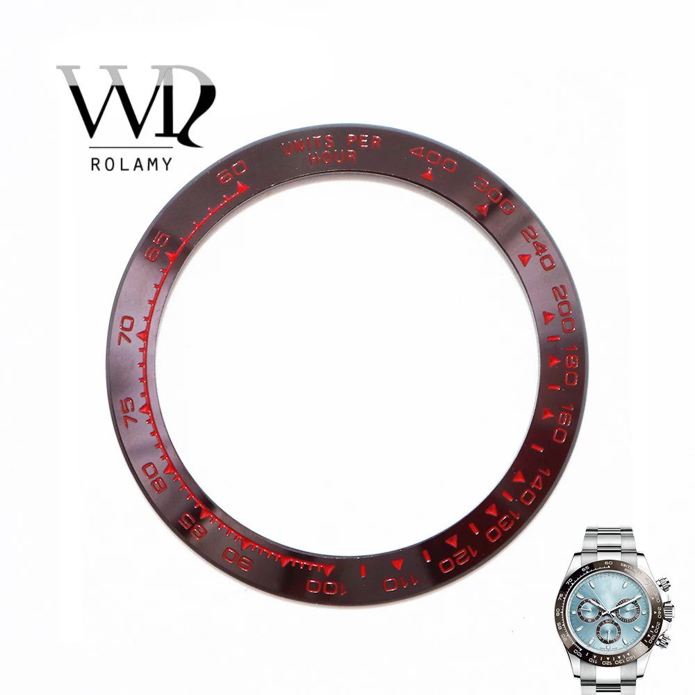 Сменные высококачественные часы Rolamy из чистой керамики, коричневого цвета с красными надписями, 38,6 мм, ободок для часов Rolex DAYTONA 116500 - 116520
