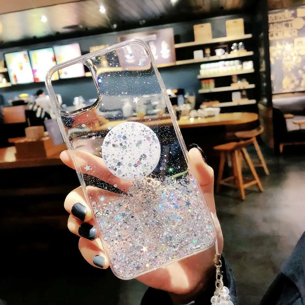 Блестящий чехол с подставкой для Samsung Galaxy S10 Plus S20 A50 A1...