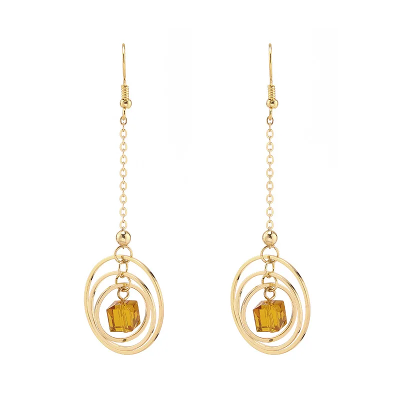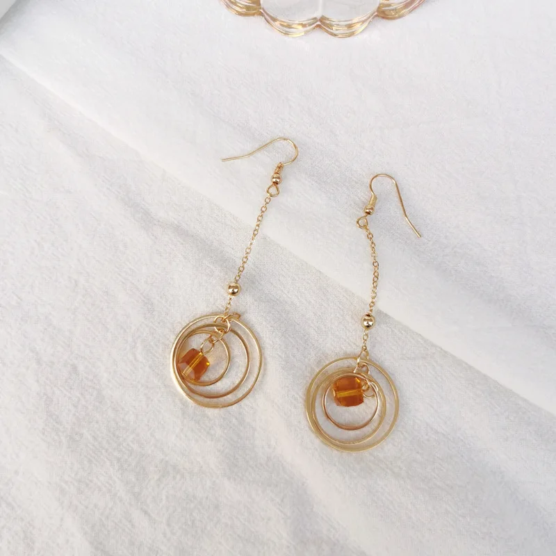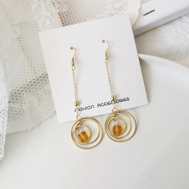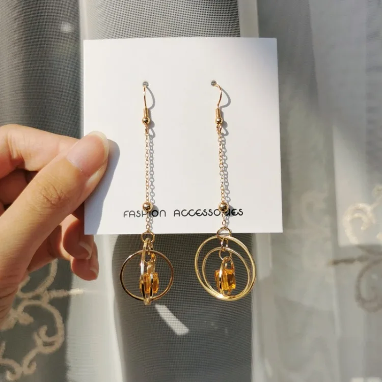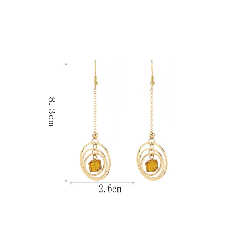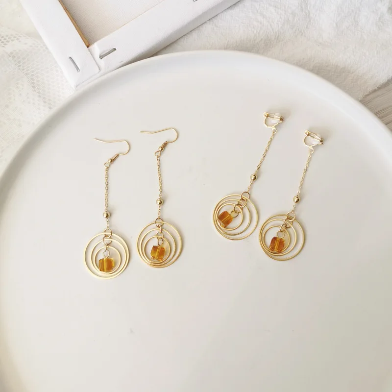 Корейские золотые длинные серьги-клипсы на цепочке, квадратные серьги-клипсы с кристаллами без пирсинга, большие маленькие круги, серьги-клипсы