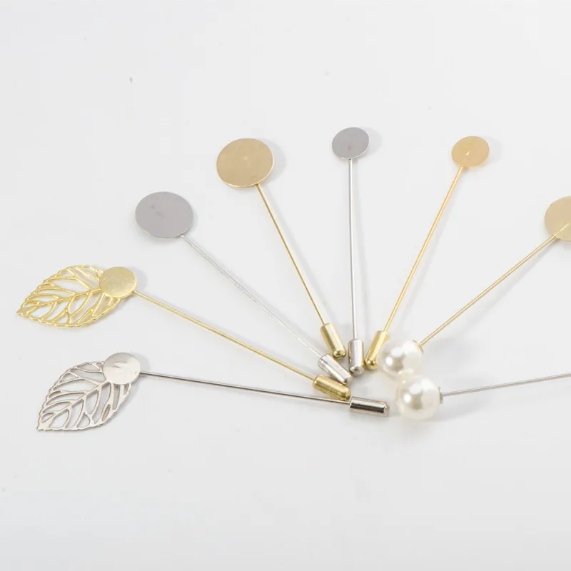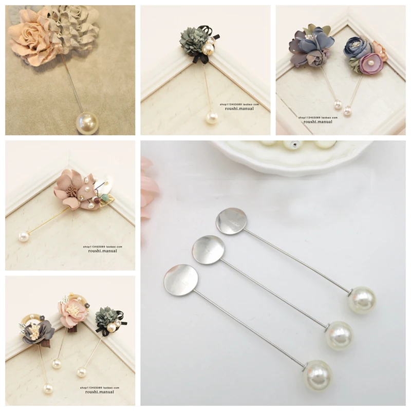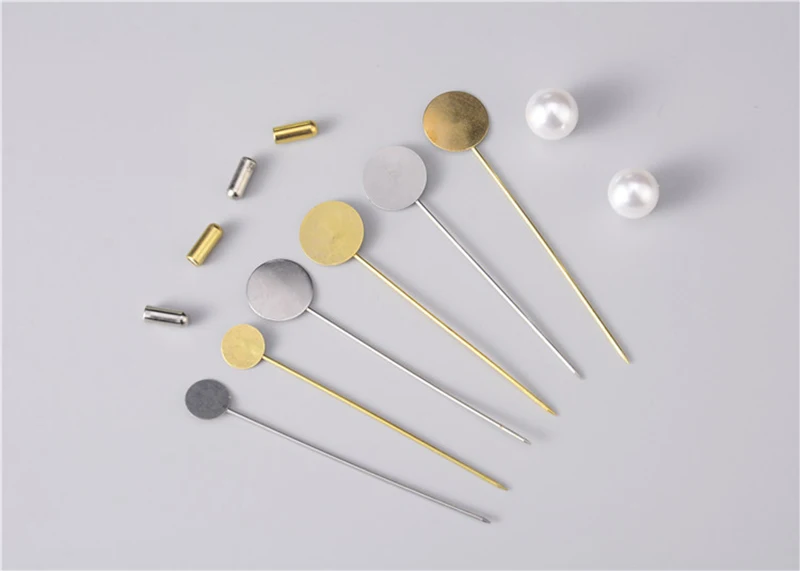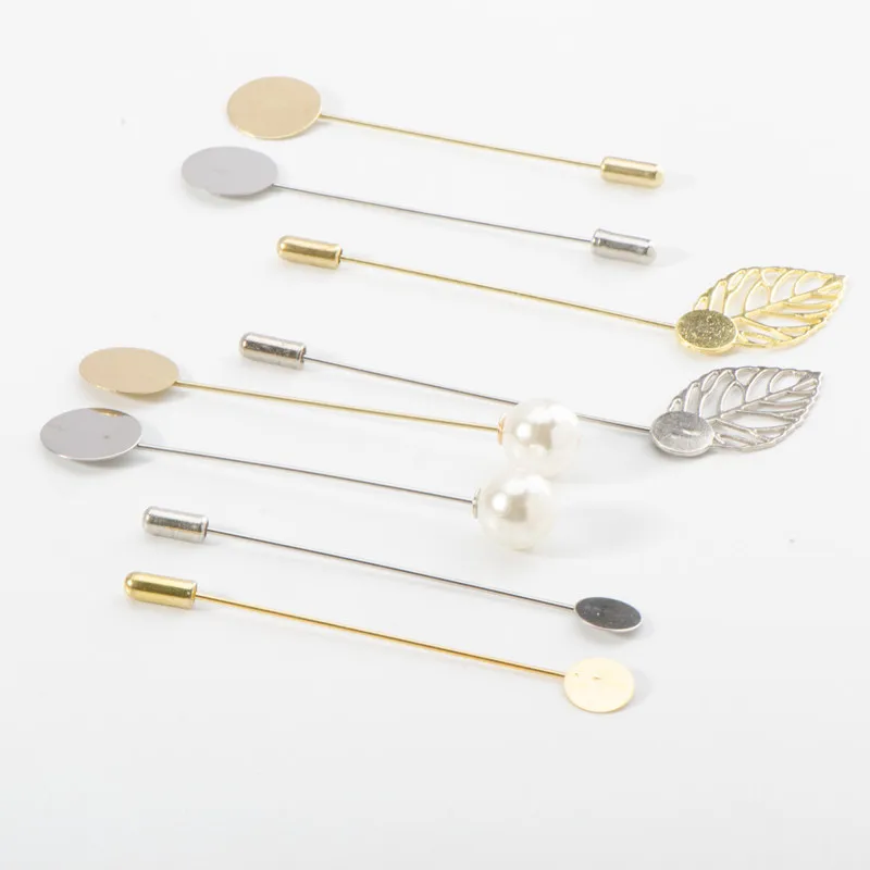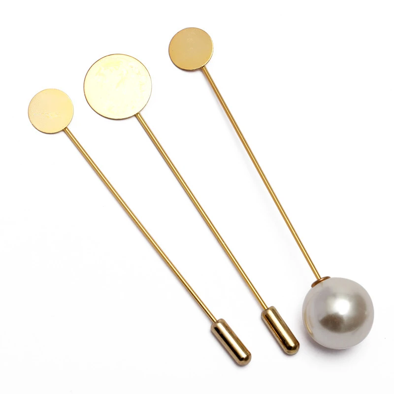 10 шт./лот круглая пустая Модная медная плоская подушечка 76 мм длинная брошь Базовая застежка с жемчужиной для DIY ювелирных изделий Компоненты