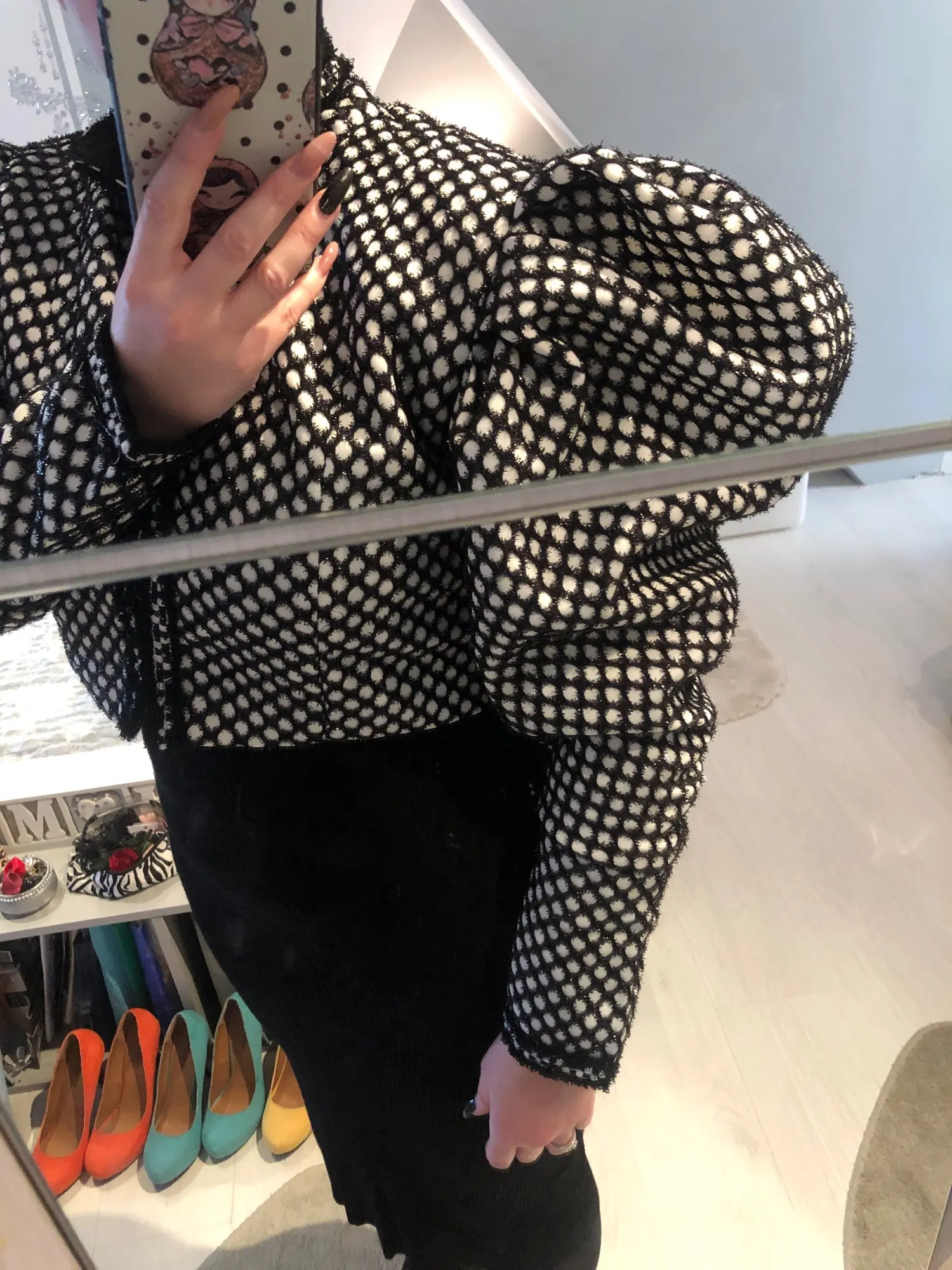 Хорошая ткань, рукава немного тесноваты, но очень элегантны.