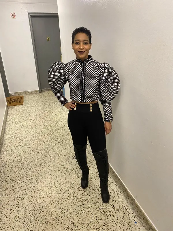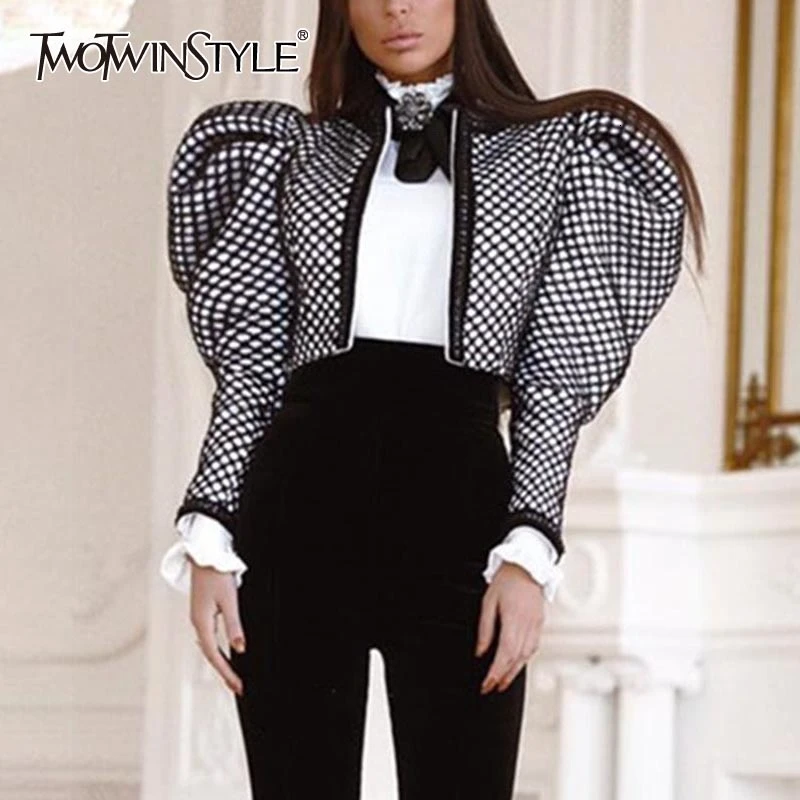 Женский жакет с рюшами TWOTWINSTYLE, клетчатый, с круглым вырезом, с пышными длинными рукавами, короткий, осенний, 2020