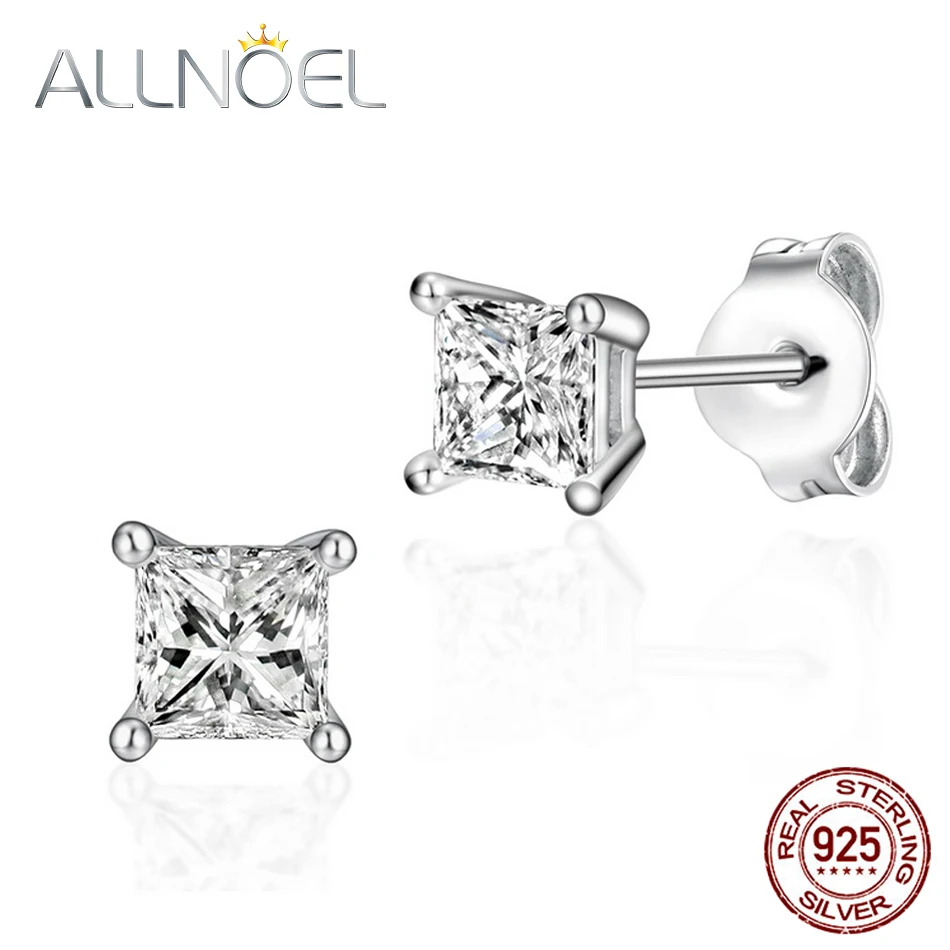 Женские серьги-гвоздики ALLNOEL, серьги из стерлингового серебра 925 пробы с белым цирконием, ювелирные украшения для помолвки и свадьбы