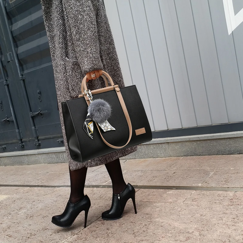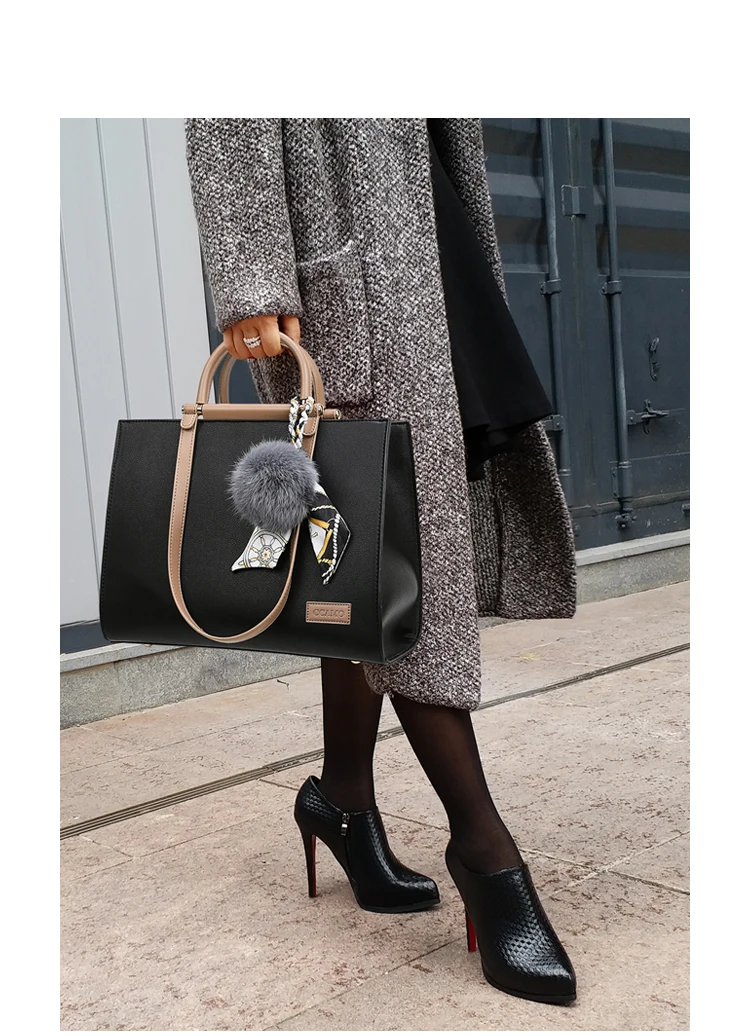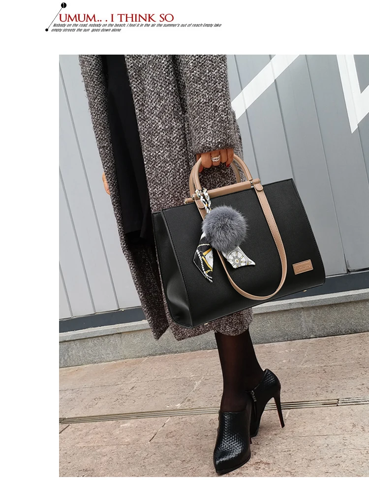 Роскошная женская сумка 2019 кожаные сумки роскошные женские ручные сумки с меховым помпоном женская сумка-мессенджер большая сумка-тоут
