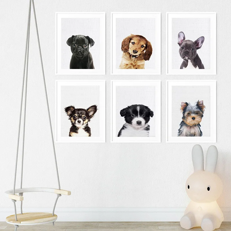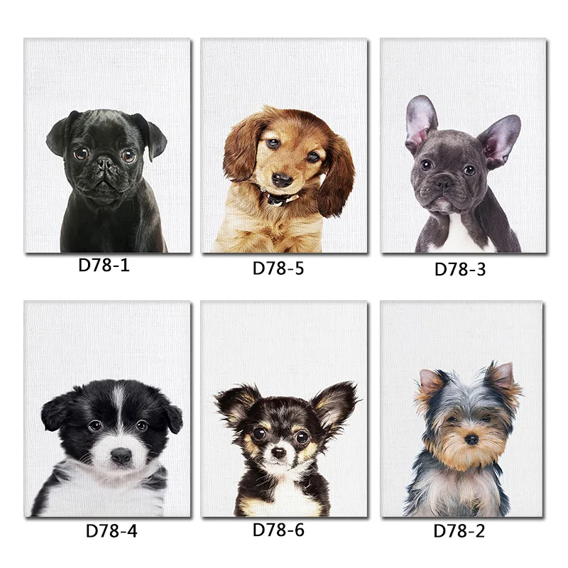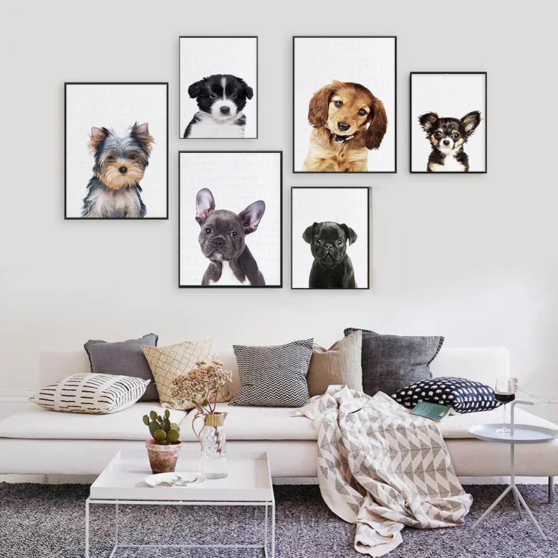Милый собачий настенный постер, украшенный персонажем, художественный декор для детской комнаты, украшение для дома, для мальчиков и девочек, декоративная рамка без рамки