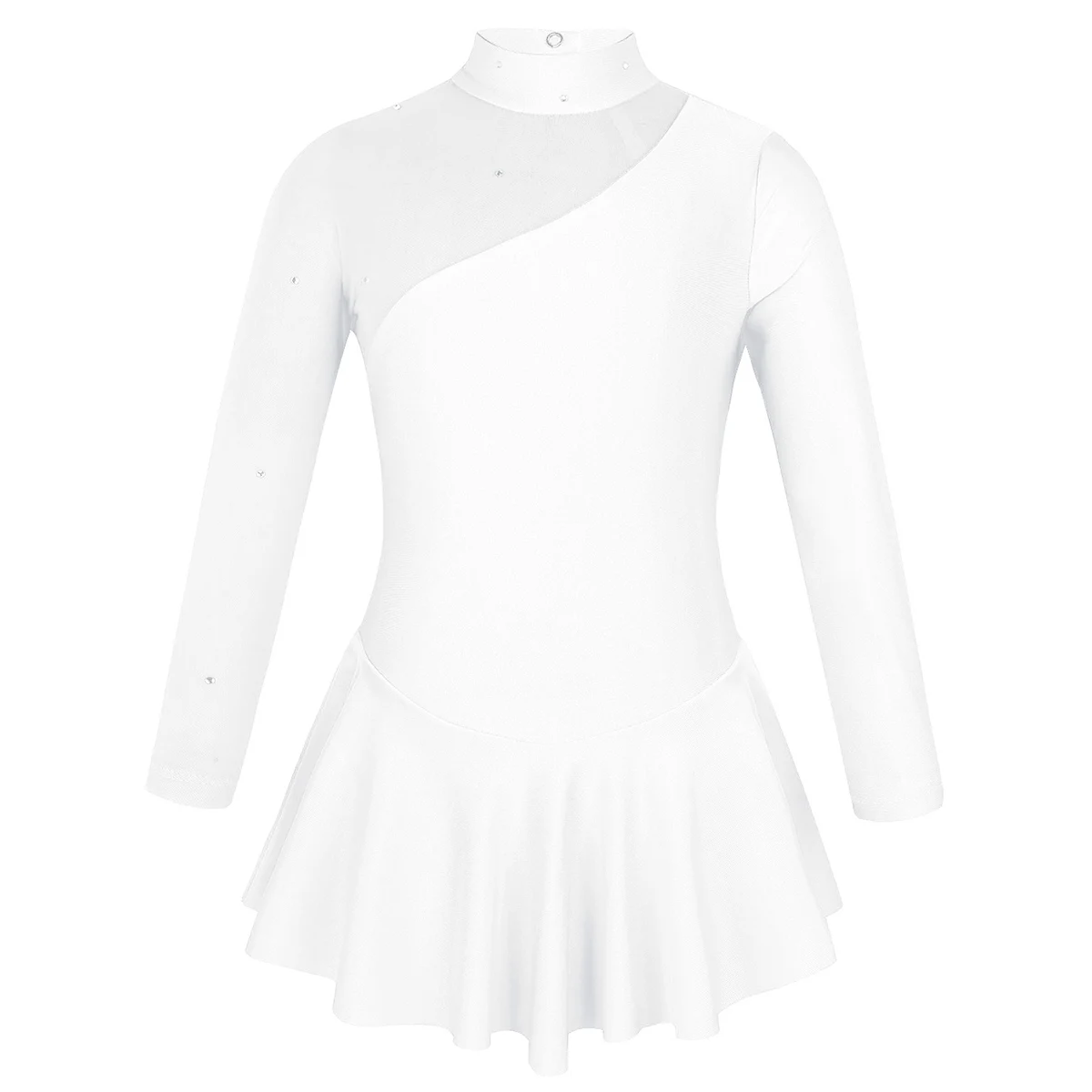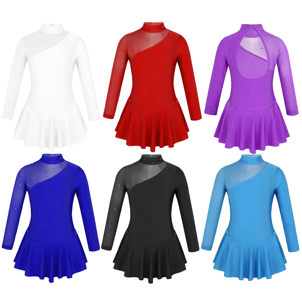 Гимнастическое платье для девочек, платье для фигурного катания на коньках, с длинными рукавами, с имитацией шеи, из тюля, с вырезами сзади, балетное танцевальное трико, детское
