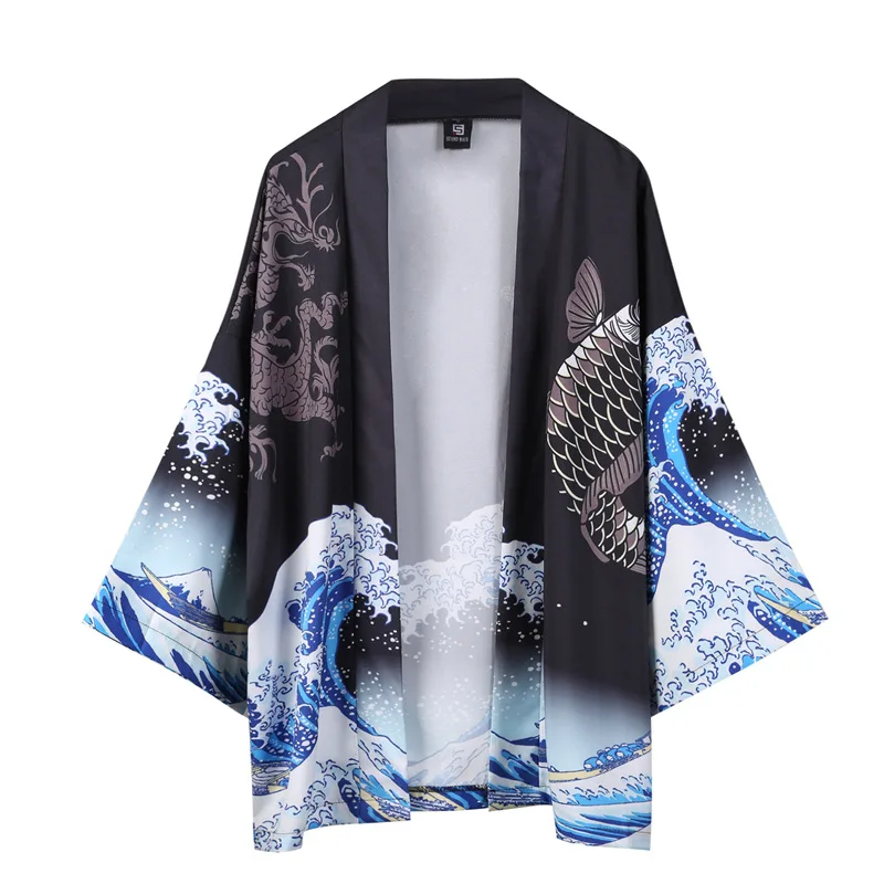 Кимоно с принтом карпа в японском стиле, Классическая рубашка-кардиган для мужчин и женщин, тонкая одежда в азиатском стиле