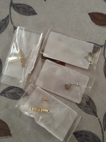 All beautiful earrings and true to the photos. Arrived wrapped individually. The seller is very honest, very polite and friendly. Communicative and responsible. I was very happy with my communication with him. The earrings I noticed are thicker, and with a bigger ball in silver. Wanted them all for my earlobes and one helix piercing. Perhaps these thick ones are more for nose or belly buttons? Not sure. Expect them to be a bit droopy on earlobes. But I don’t mind I can’t sleep with another kind of earring.