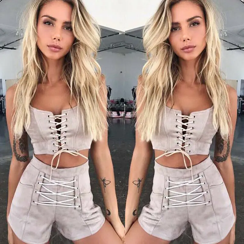 Стиль:Сексуальный укороченный топ на шнуровке и комбинезон со штанами Размер:Размеры S, M, L, XL