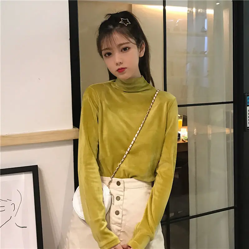 Женская футболка, теплые золотые бархатные пуловеры, топы, топ с вы...