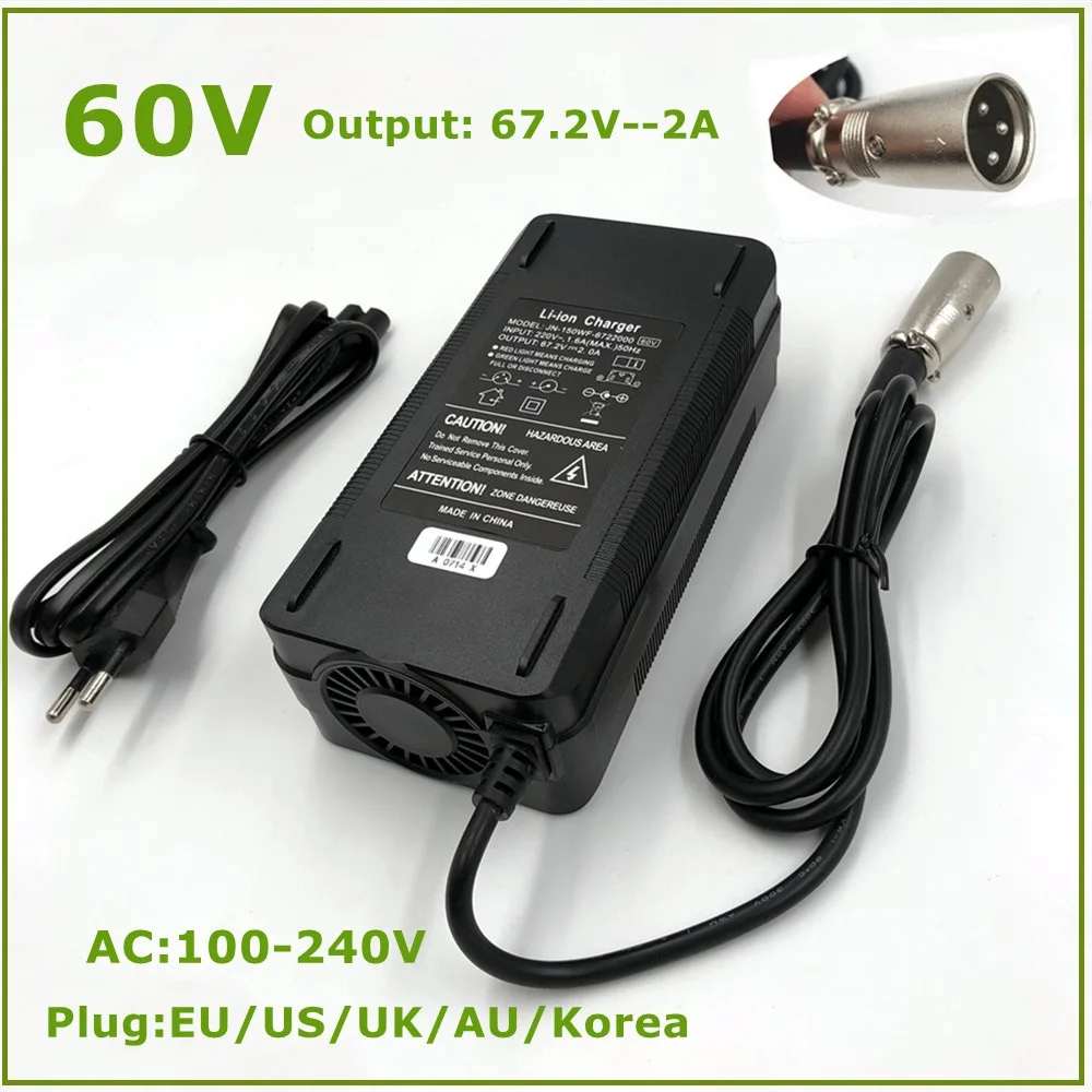 Зарядное устройство 67,2 в, 2 А, В, 2 А, зарядное устройство для электрического велосипеда, литиевый аккумулятор 60 в, XLR разъем, зарядное устройство в, 2 А