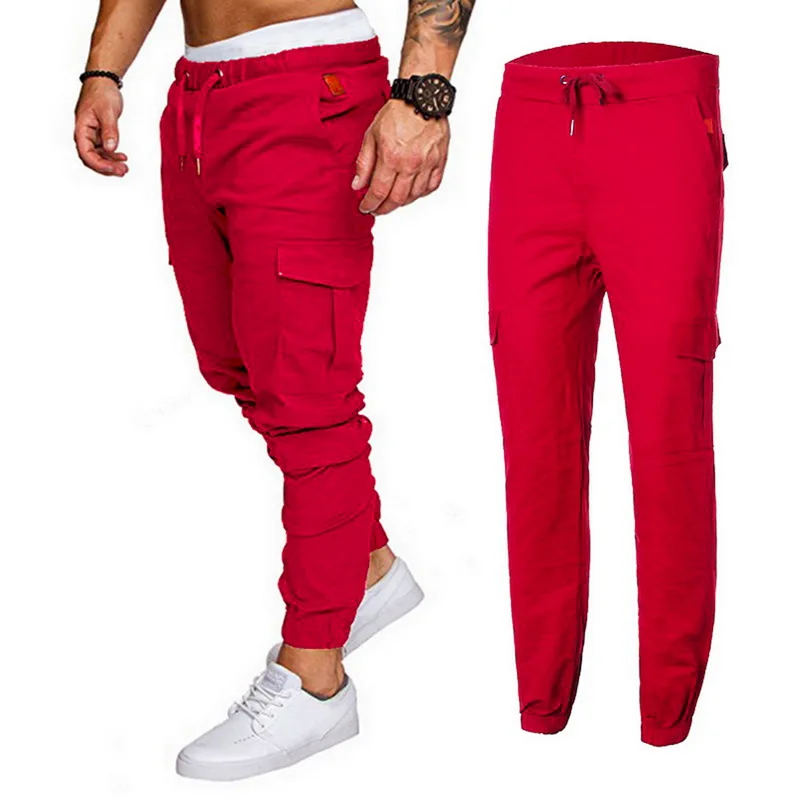 Брюки-Карандаш мужские зауженные, джоггеры с резинкой на щиколотке, повседневные штаны с завязкой, брюки с боковыми карманами, однотонная спортивная одежда