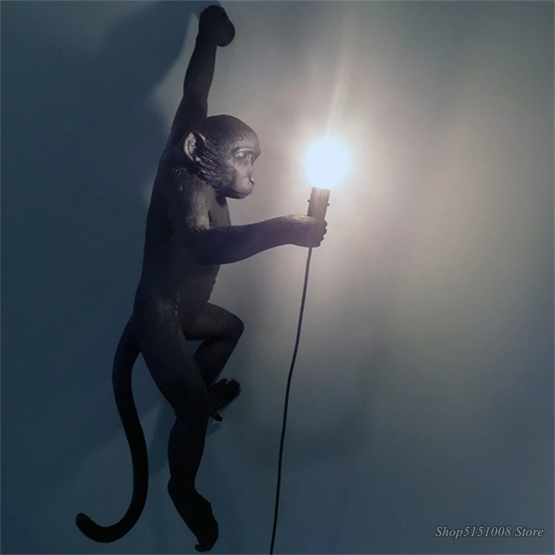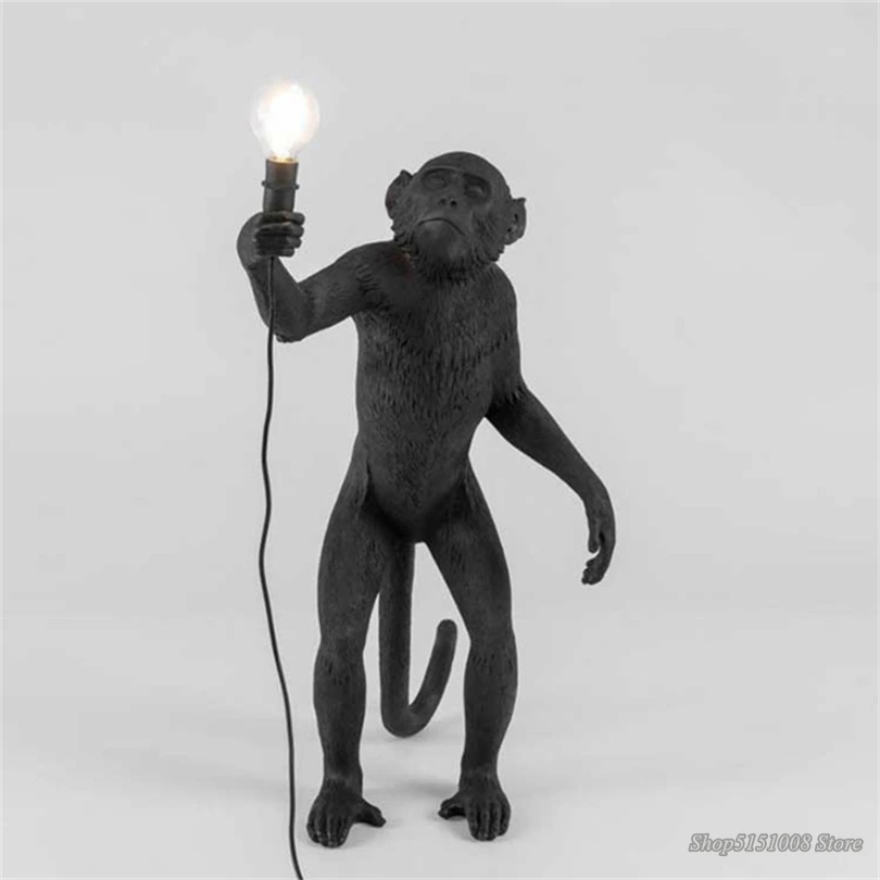 Лампа в виде животных, подвесные светильники из каучуковой веревки в скандинавском стиле, светодиодсветодиодный лампы в виде черной обезьяны, простое художественное украшение для дома