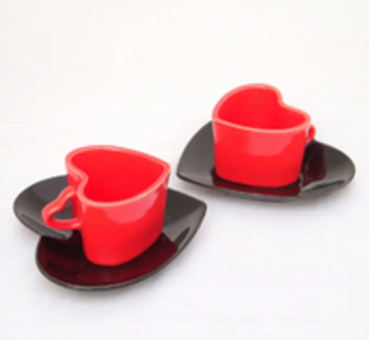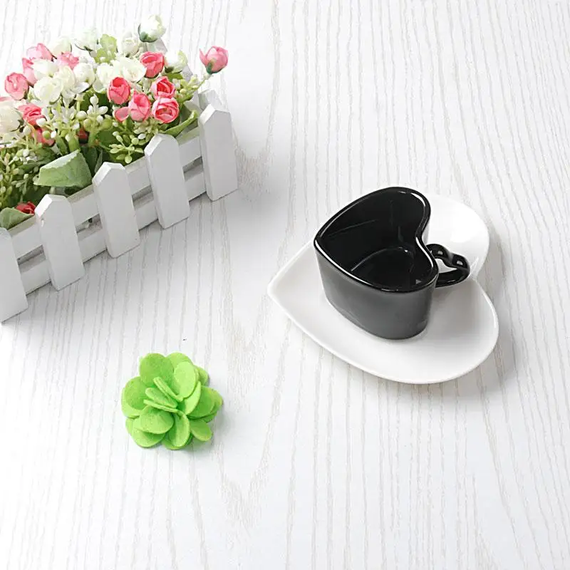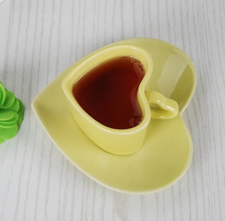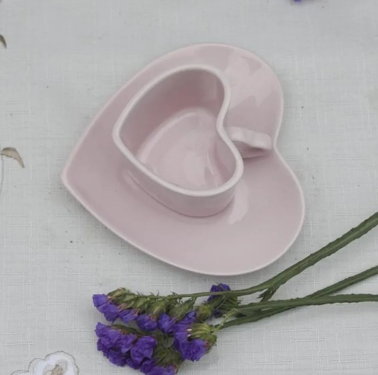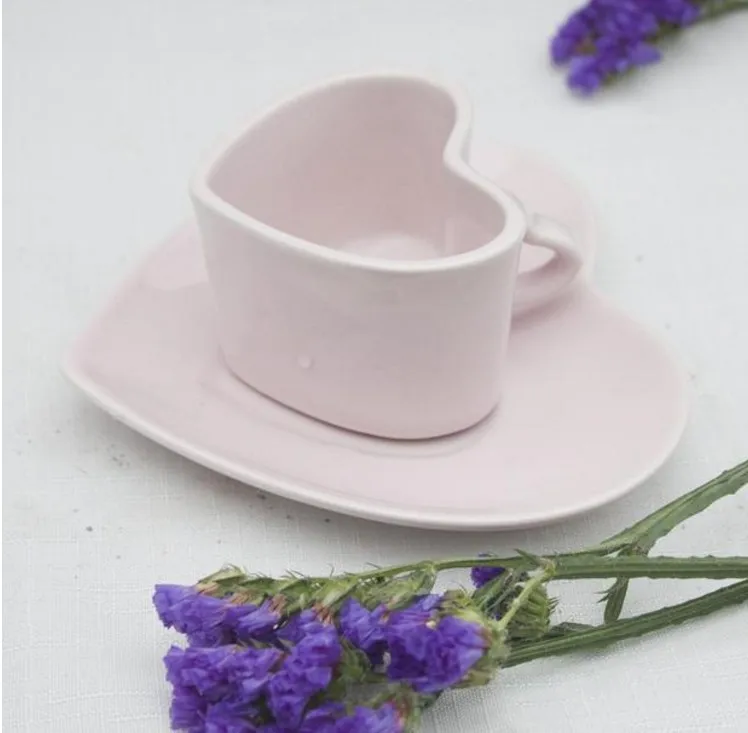 Керамическая чашка Love для пары, набор кофейных чашек, блюдце в форме сердца, чашка для послеобеденного чая, эспрессо, кофейная чашка, блюдце, сафлоровый чайный набор