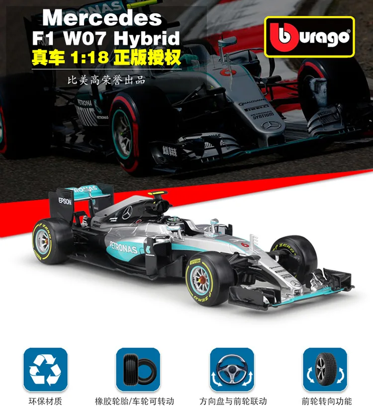 Bburago 1:18 F1 Команда Mercedes-Benz F1 W07 гоночная модель Rosberg Гамильтон гоночная модель собирать подарки игрушка
